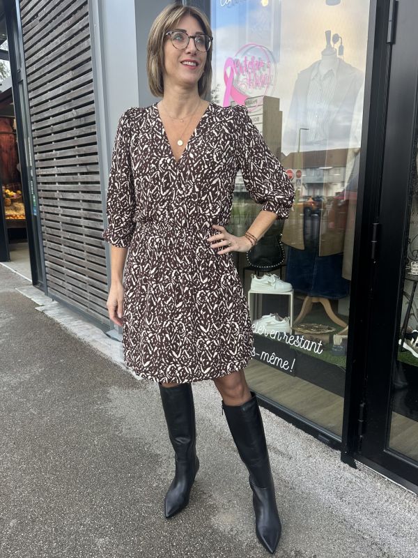 ROBE COURTE TAILLE ÉLASTIQUE MARRON NOIR