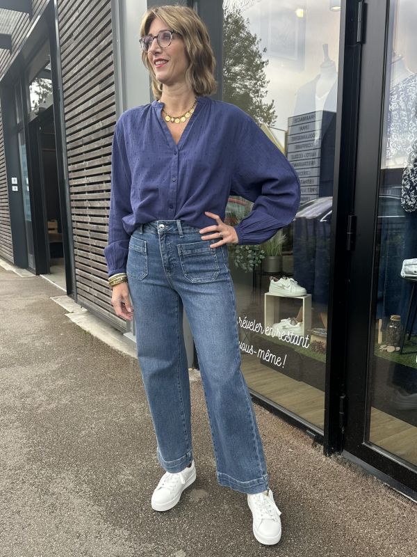 BLOUSE BLANCHE BRODERIE BLEUE