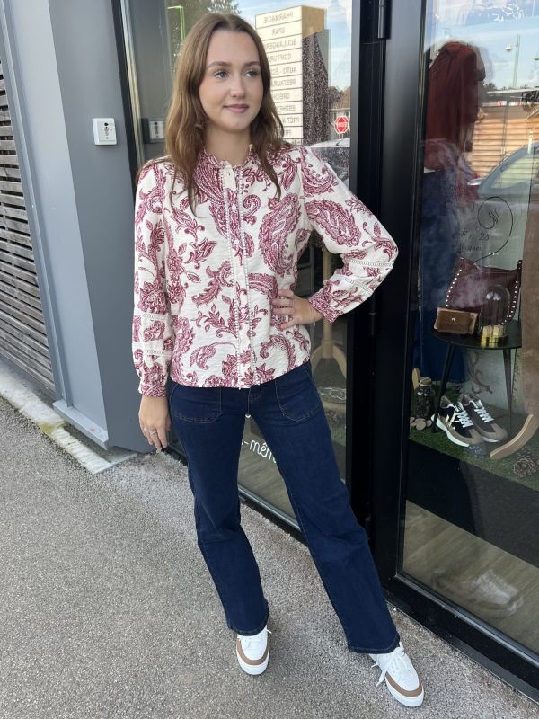 BLOUSE ÉCRU ET BORDEAUX