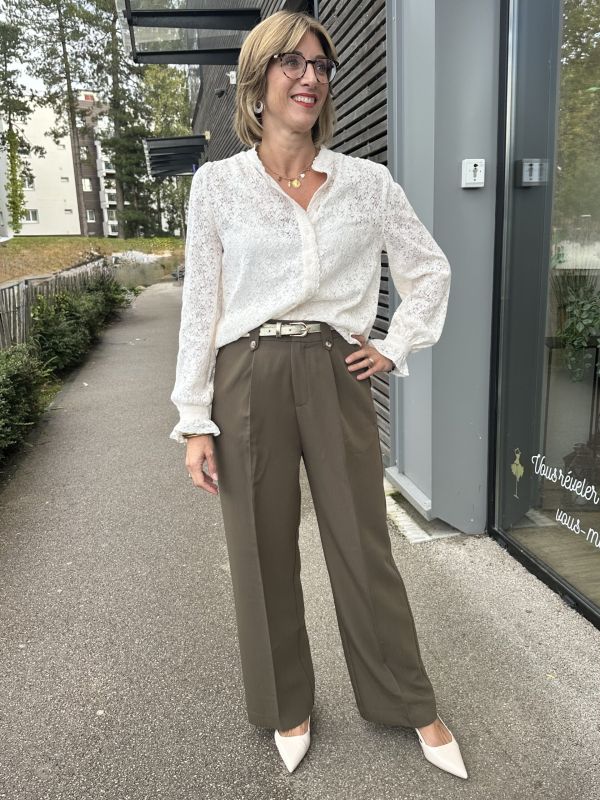 BLOUSE BLANCHE À BRODERIE KAKI