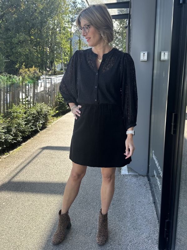 BLOUSE NOIR AJOURE FLEURS