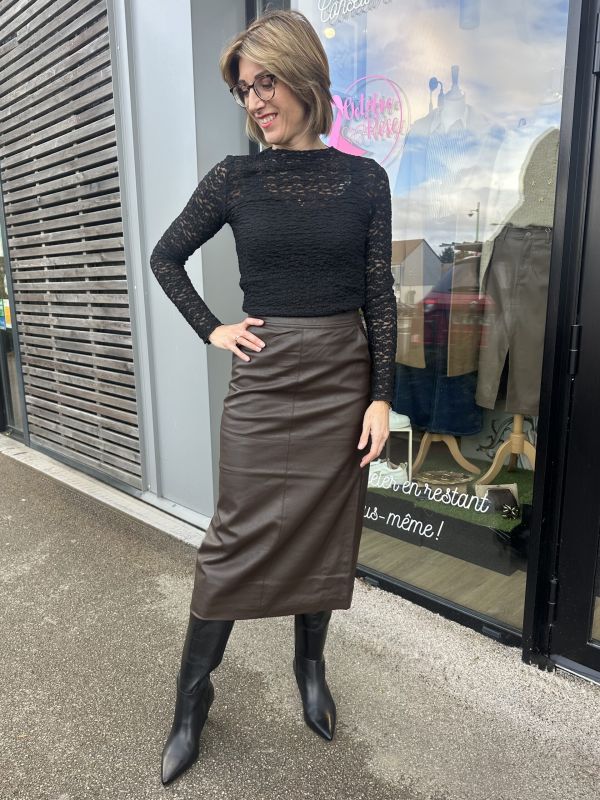 JUPE CRAYON SIMILI CUIR CHOCOLAT