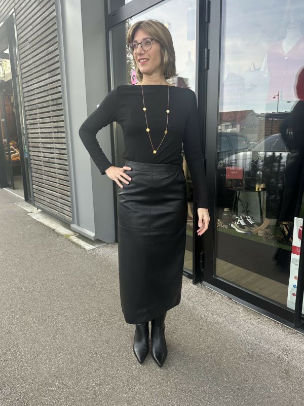JUPE LONGUE SIMILI CUIR NOIR