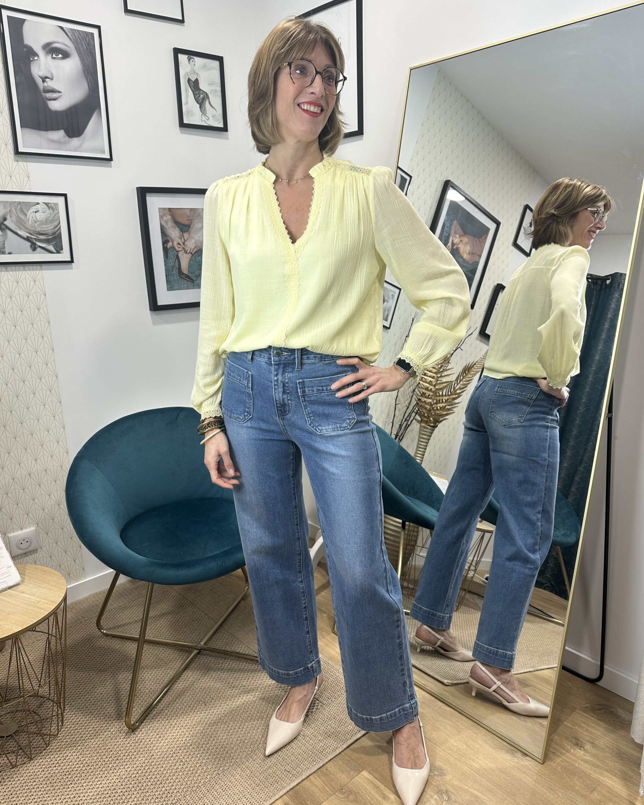La blouse jaune col V dentelle illumine instantanément une tenue grâce à sa couleur chaleureuse et féminine. Sa coupe fluide assure un tombé naturel et confortable, idéal pour le quotidien comme pour une sortie plus habillée.