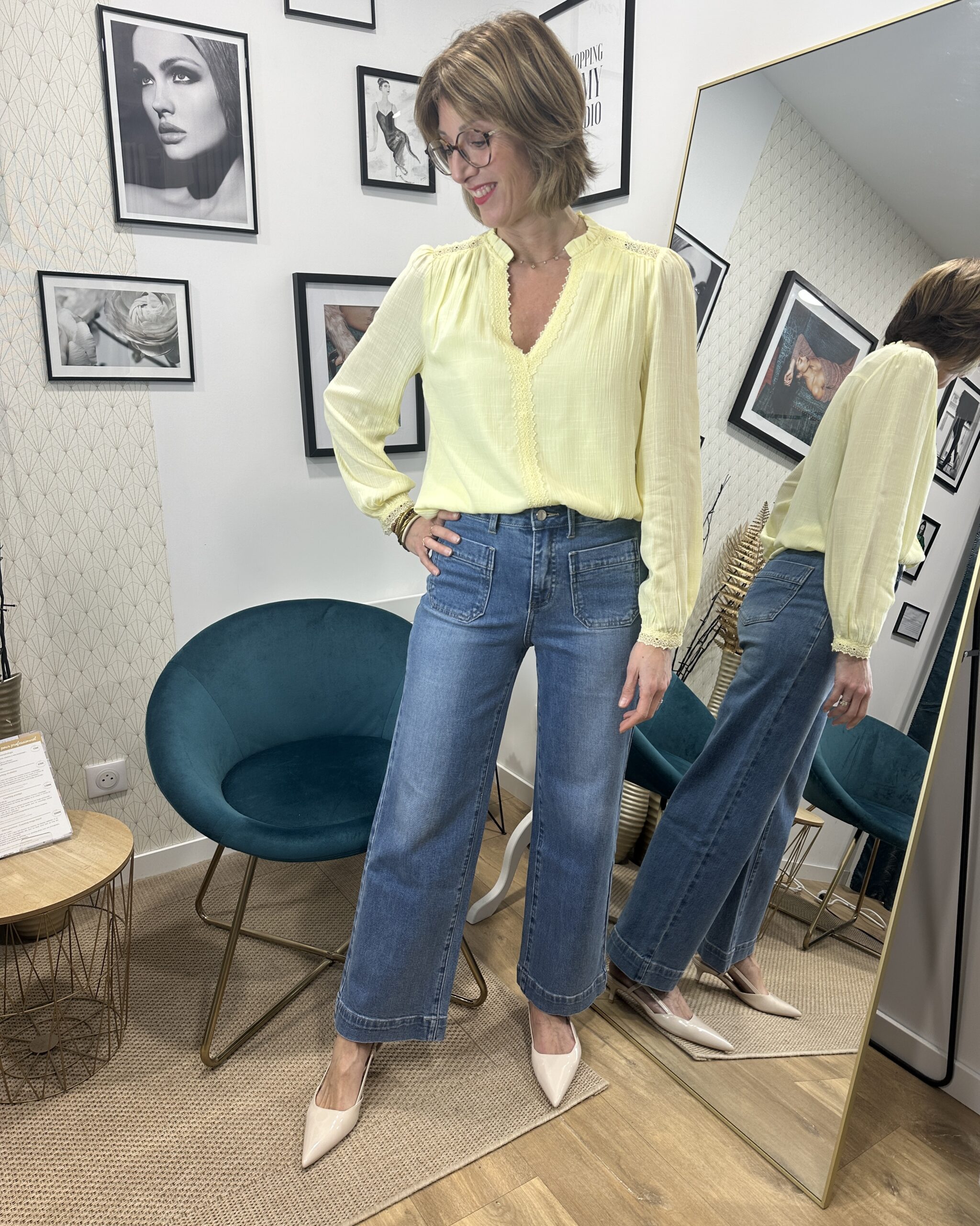 BLOUSE JAUNE COL V dentelle