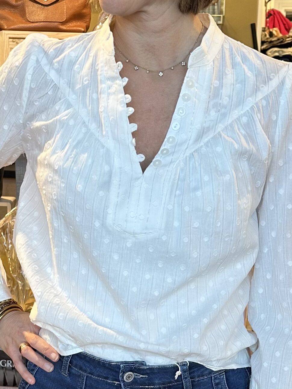 BLOUSE BLANCHE ENCOLURE V, FILAMENT ARGENTE