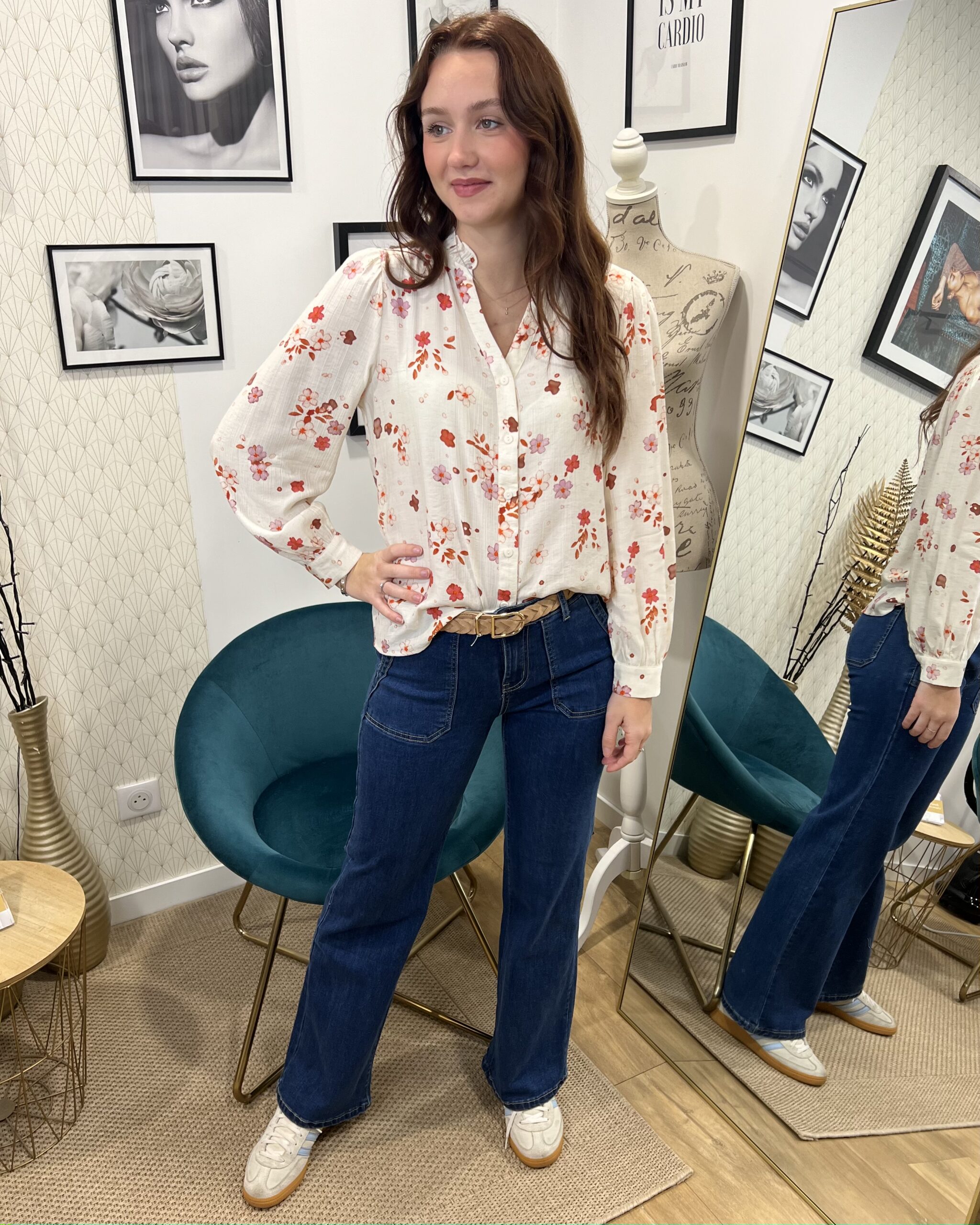 Cette blouse écru à fleurs roses et rouges est idéale pour composer des looks féminins et lumineux. Son fond écru doux met en valeur un imprimé floral aux teintes roses et rouges, apportant fraîcheur et élégance à votre tenue. Polyvalente, elle se porte aussi bien au quotidien que pour des occasions plus habillées.