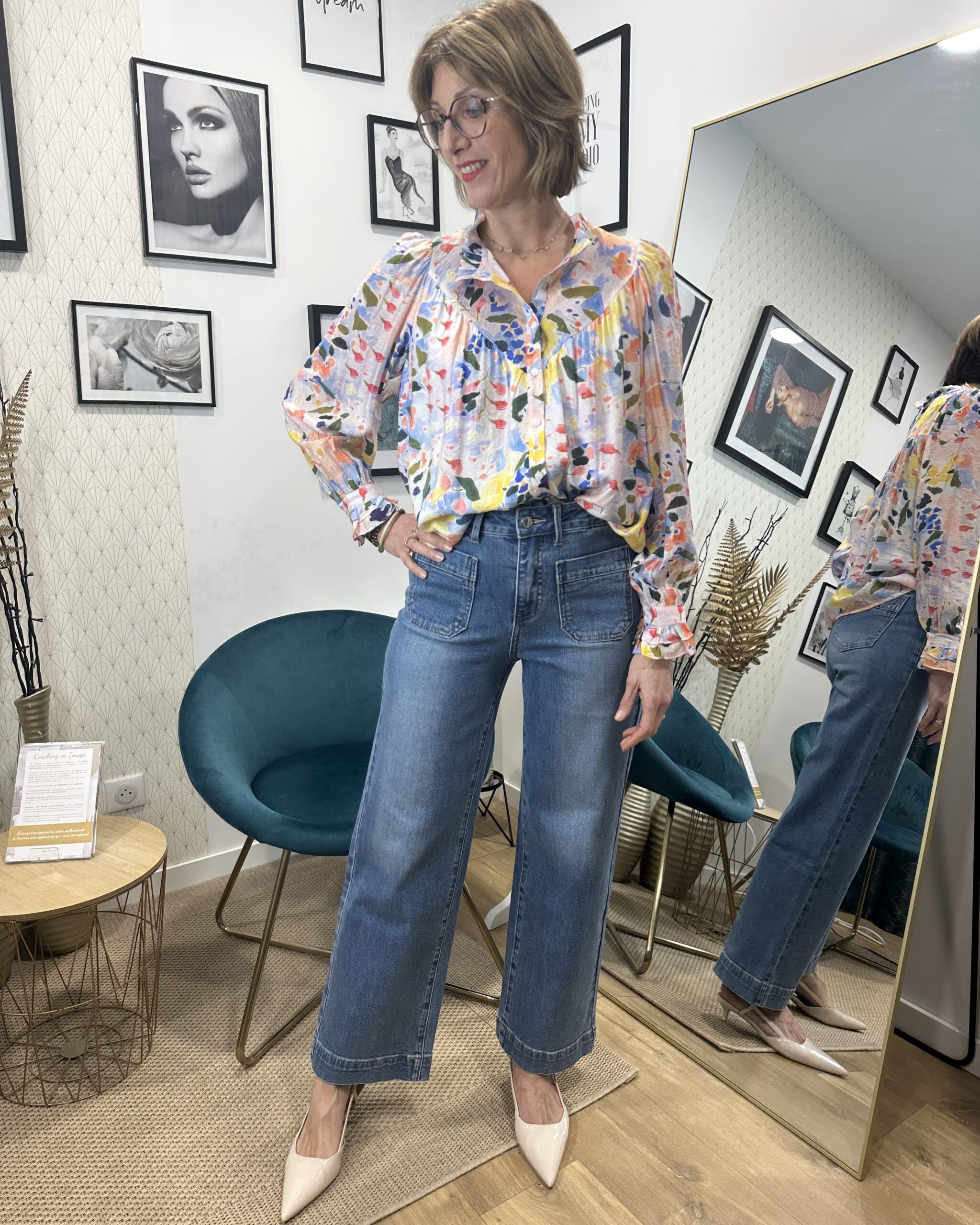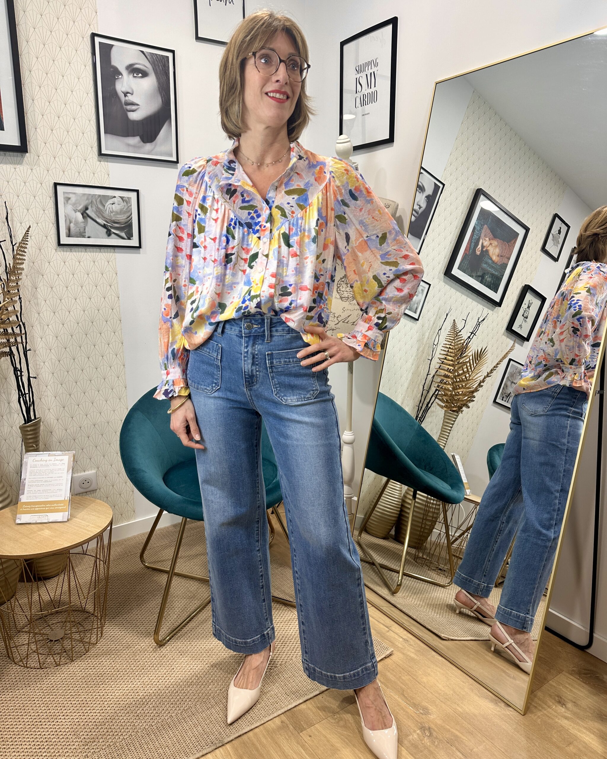 Le chemisier col mao multicolore apporte fraîcheur et originalité à votre dressing. Sa coupe vaporeuse crée un tombé léger et fluide qui accompagne naturellement les mouvements. Il offre une allure élégante tout en restant confortable au quotidien.