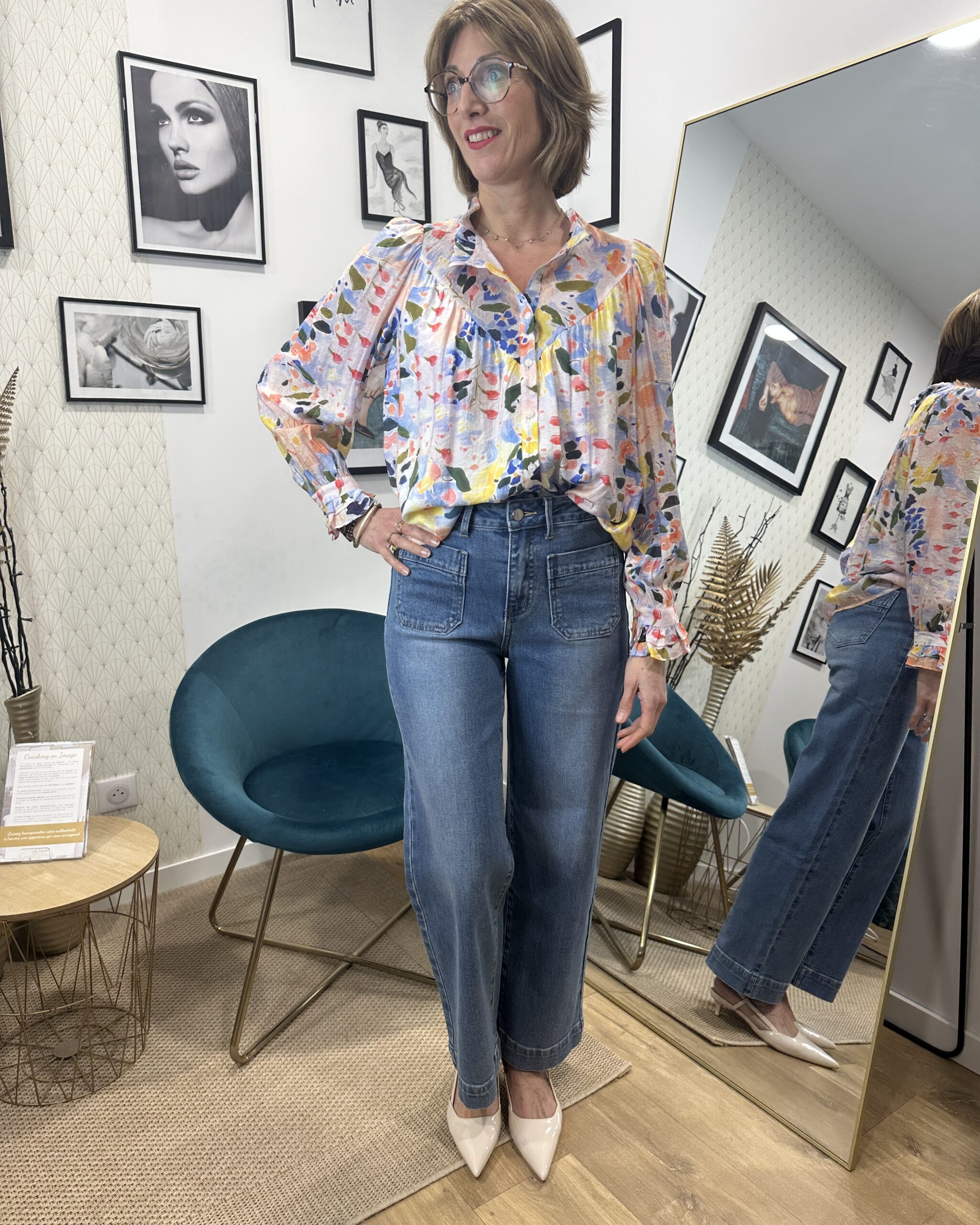 En choisissant ce chemisier col mao multicolore, vous optez pour une pièce élégante, colorée et facile à associer, idéale pour illuminer vos looks de saison.