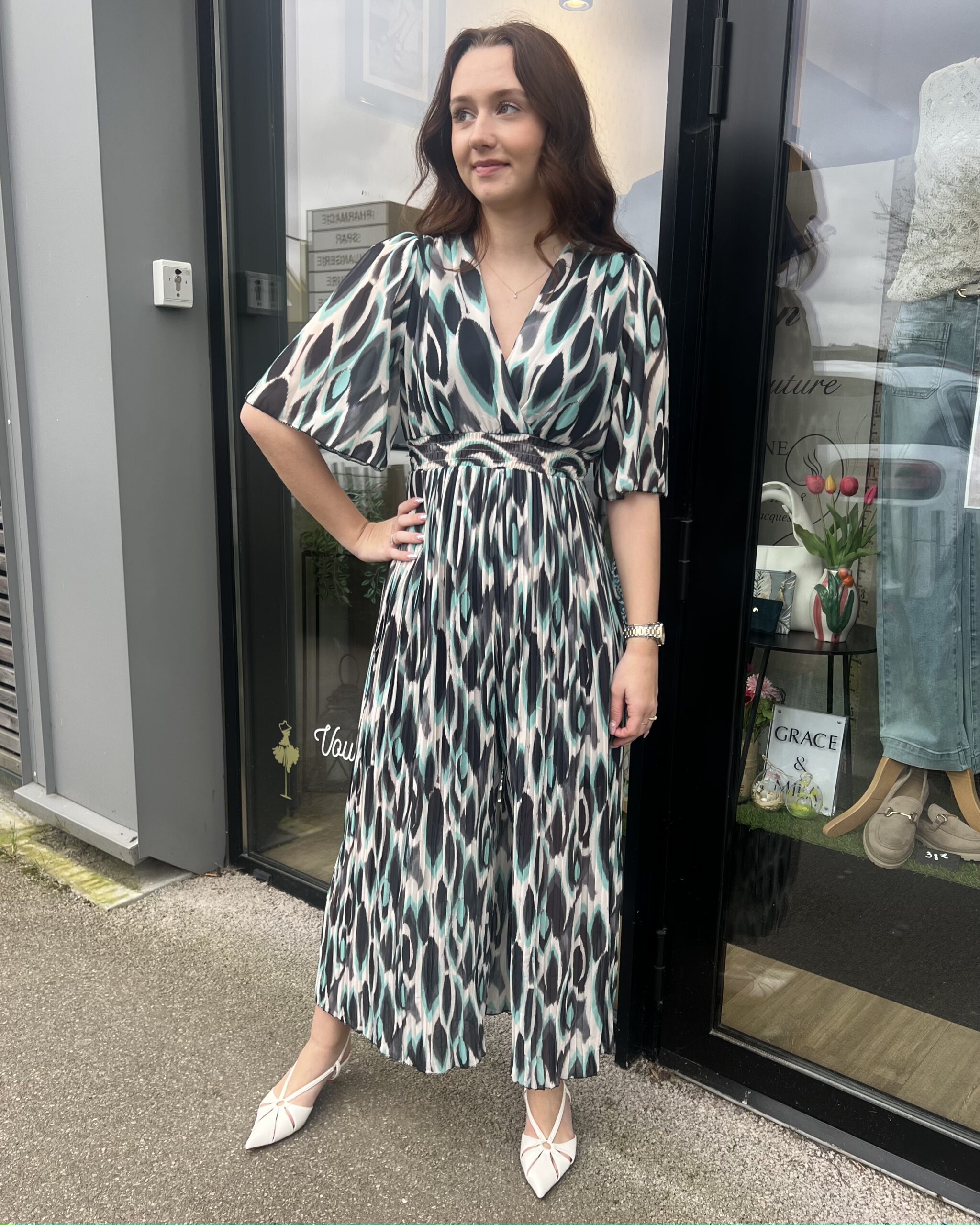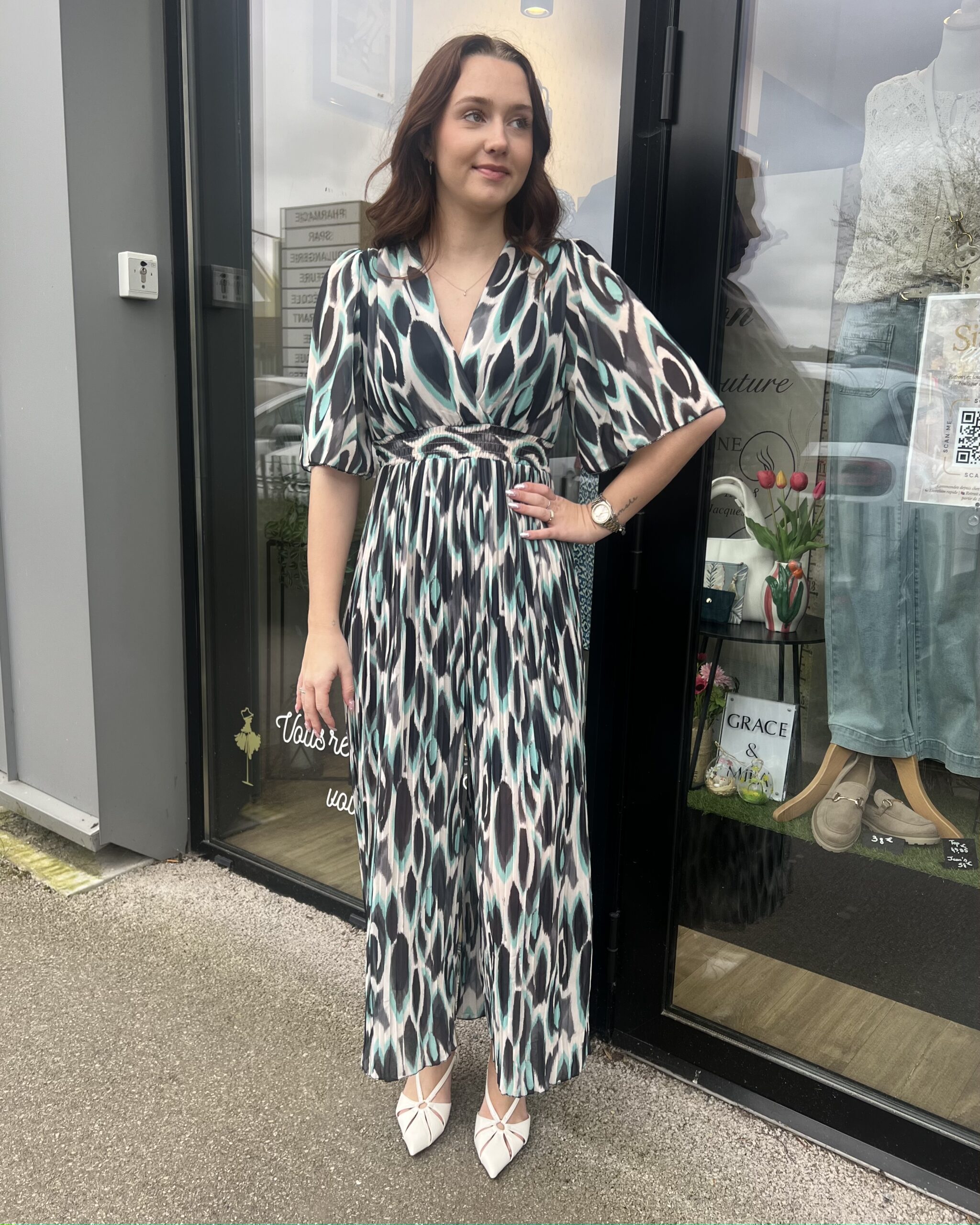 Facile à accessoiriser, cette combinaison se suffit à elle-même pour composer une tenue forte, aussi bien pour une sortie que pour une occasion spéciale.