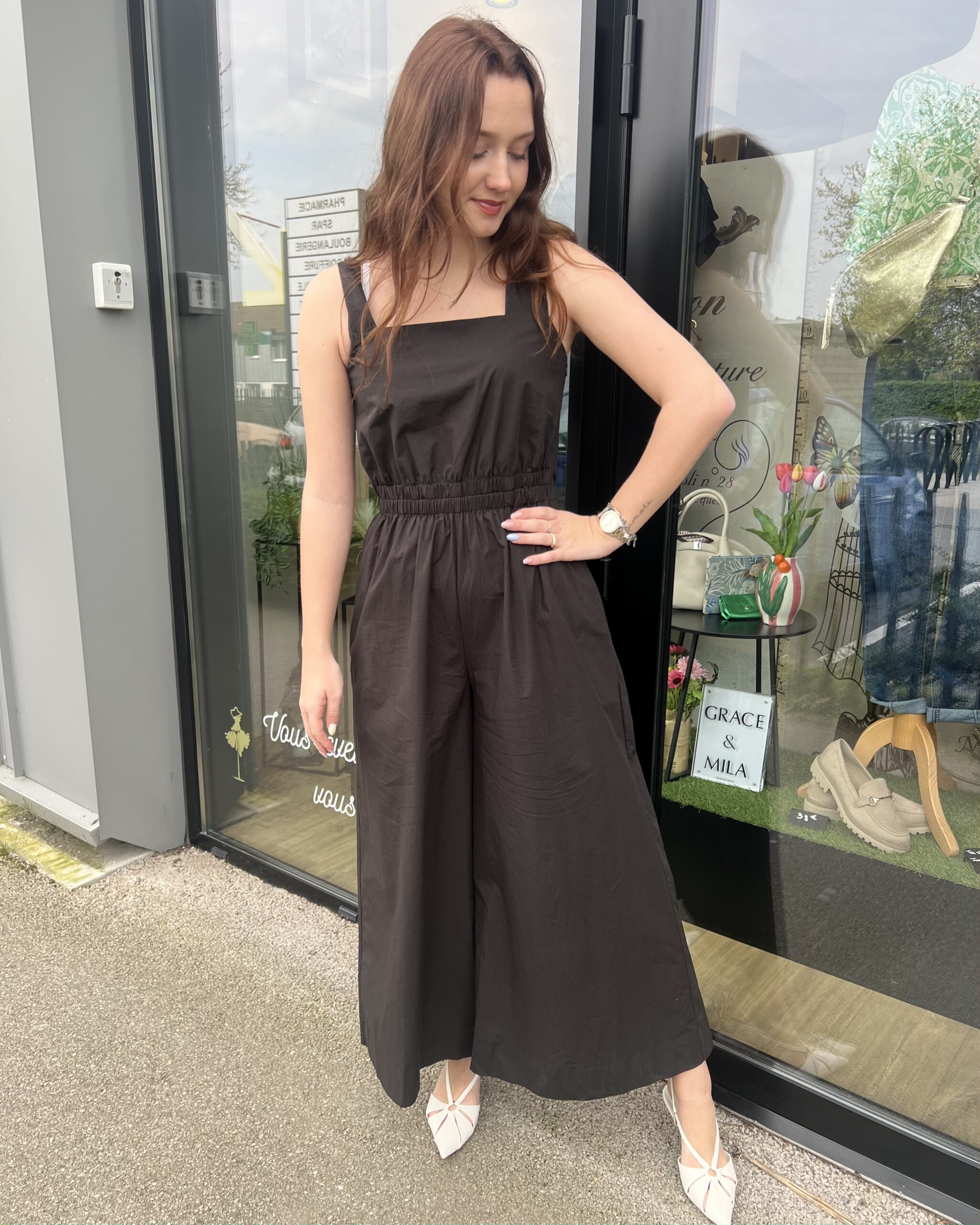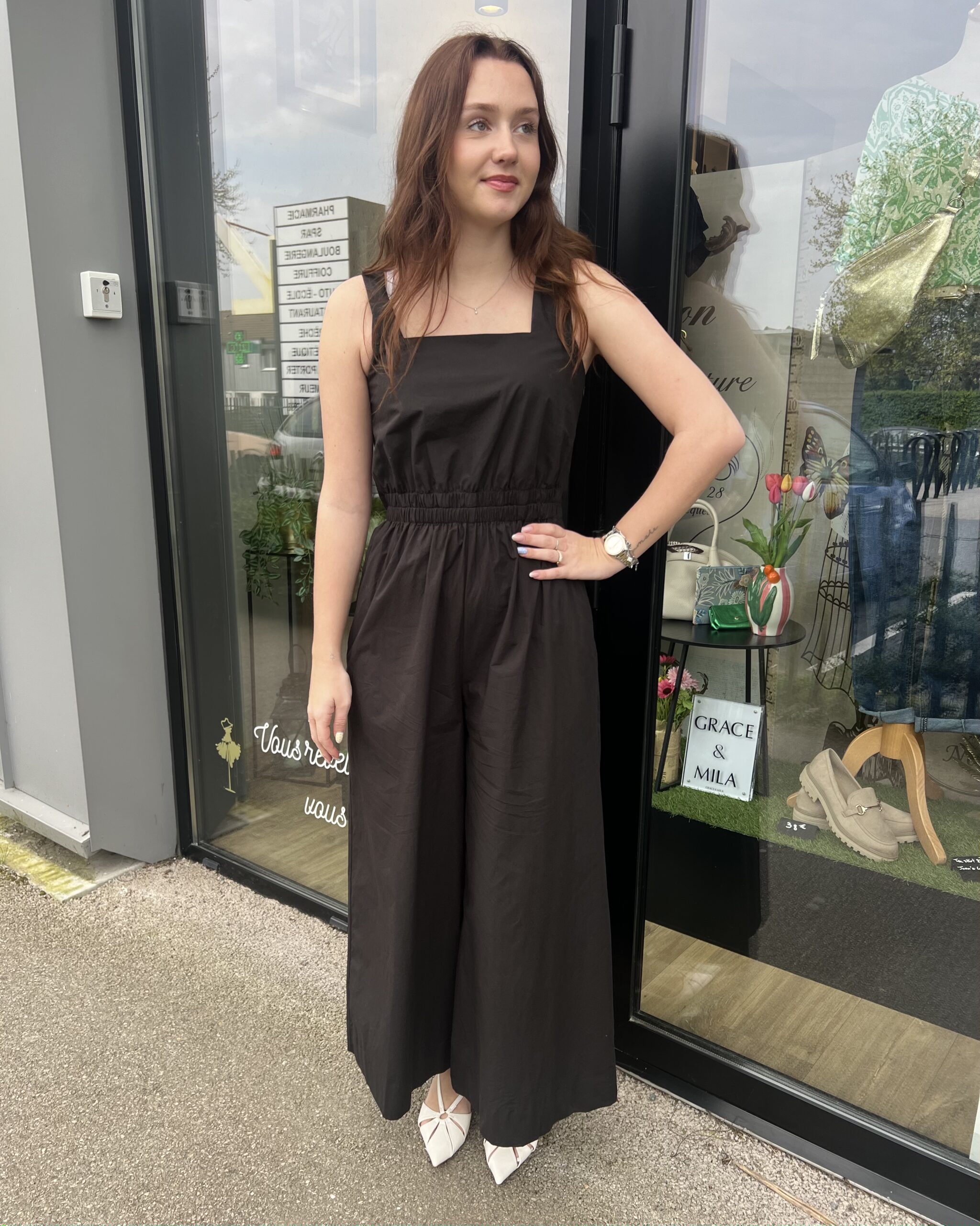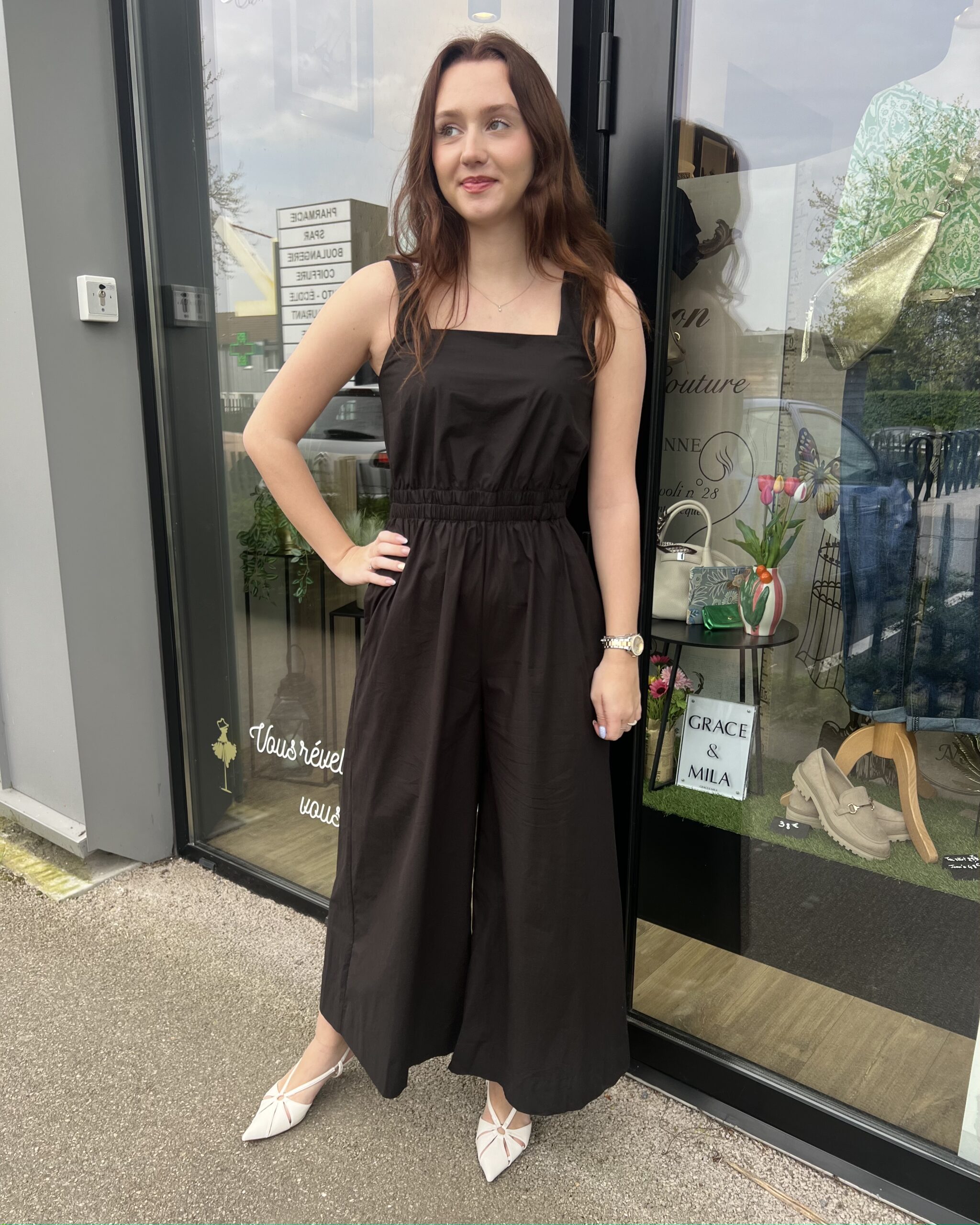 Élégante sans effort, cette combinaison noire est la définition même du chic moderne. Avec sa ligne épurée et sa teinte profonde, elle offre une allure sophistiquée en toute simplicité.