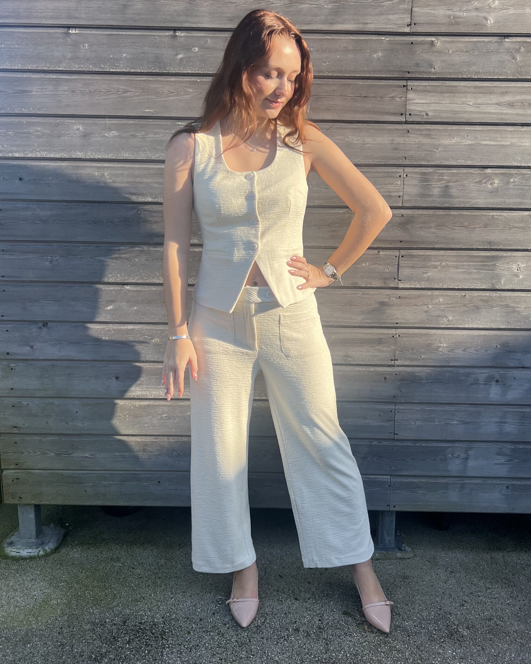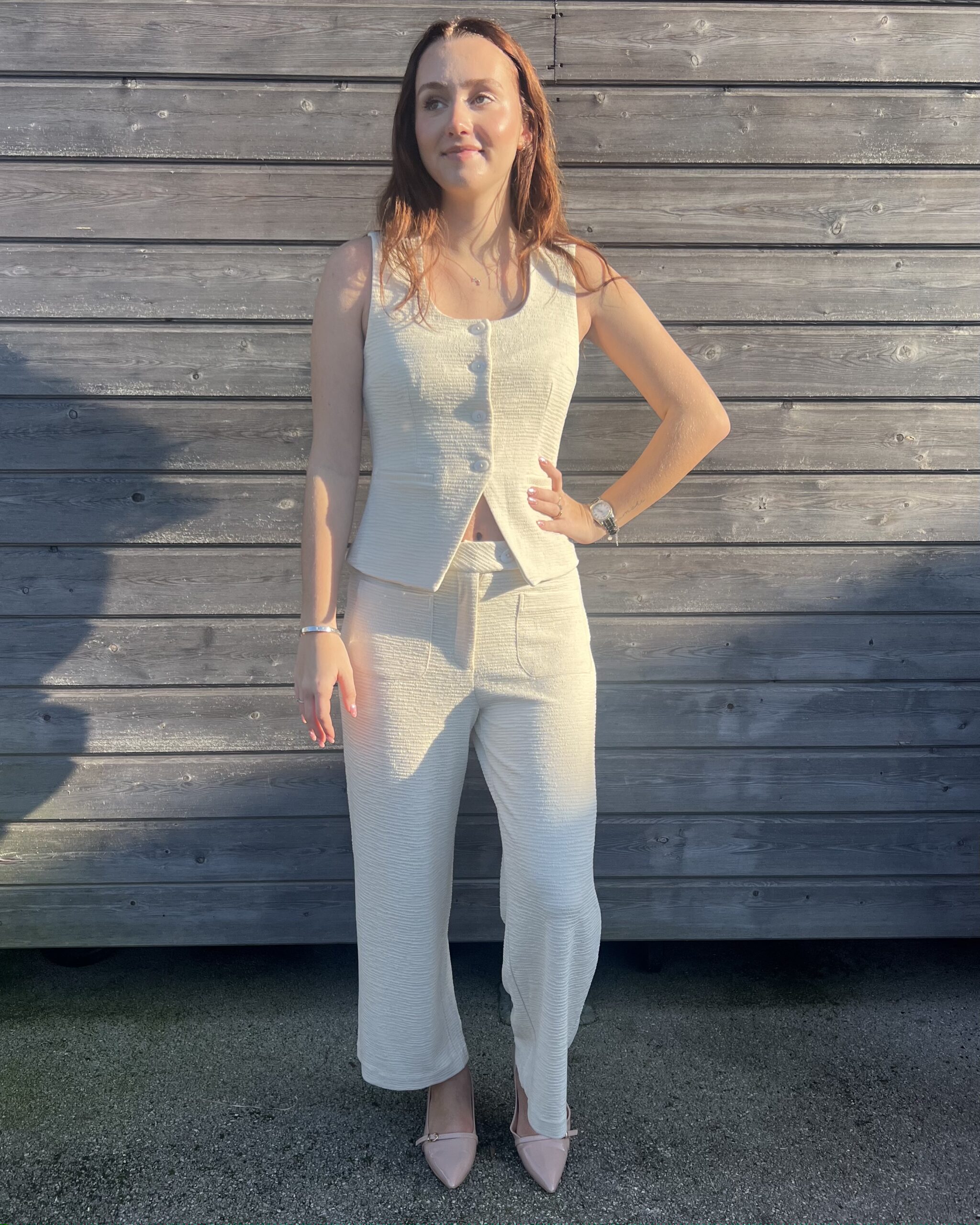 Apportez une touche d’élégance à votre tenue avec ce haut habillé sans manche crème. Chic et raffiné, il est parfait pour composer un look sophistiqué en toute simplicité.