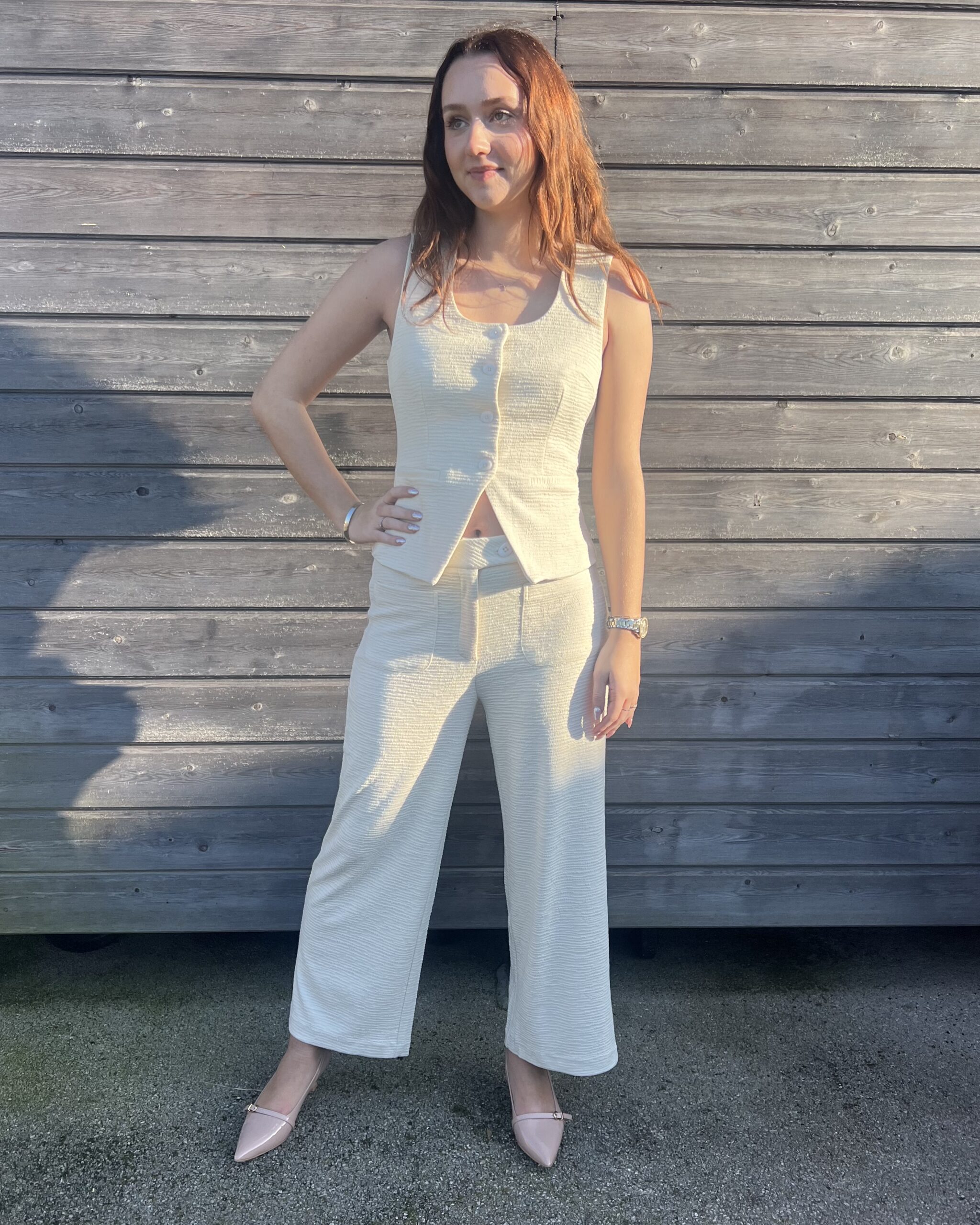 Sa coupe sans manches met en valeur les épaules et apporte de la légèreté à la silhouette, tandis que sa teinte crème illumine le teint et s’associe facilement à toutes vos pièces favorites. Porté avec un pantalon tailleur, une jupe élégante ou même un jean pour un style plus moderne, ce haut s’adapte à toutes les occasions.
