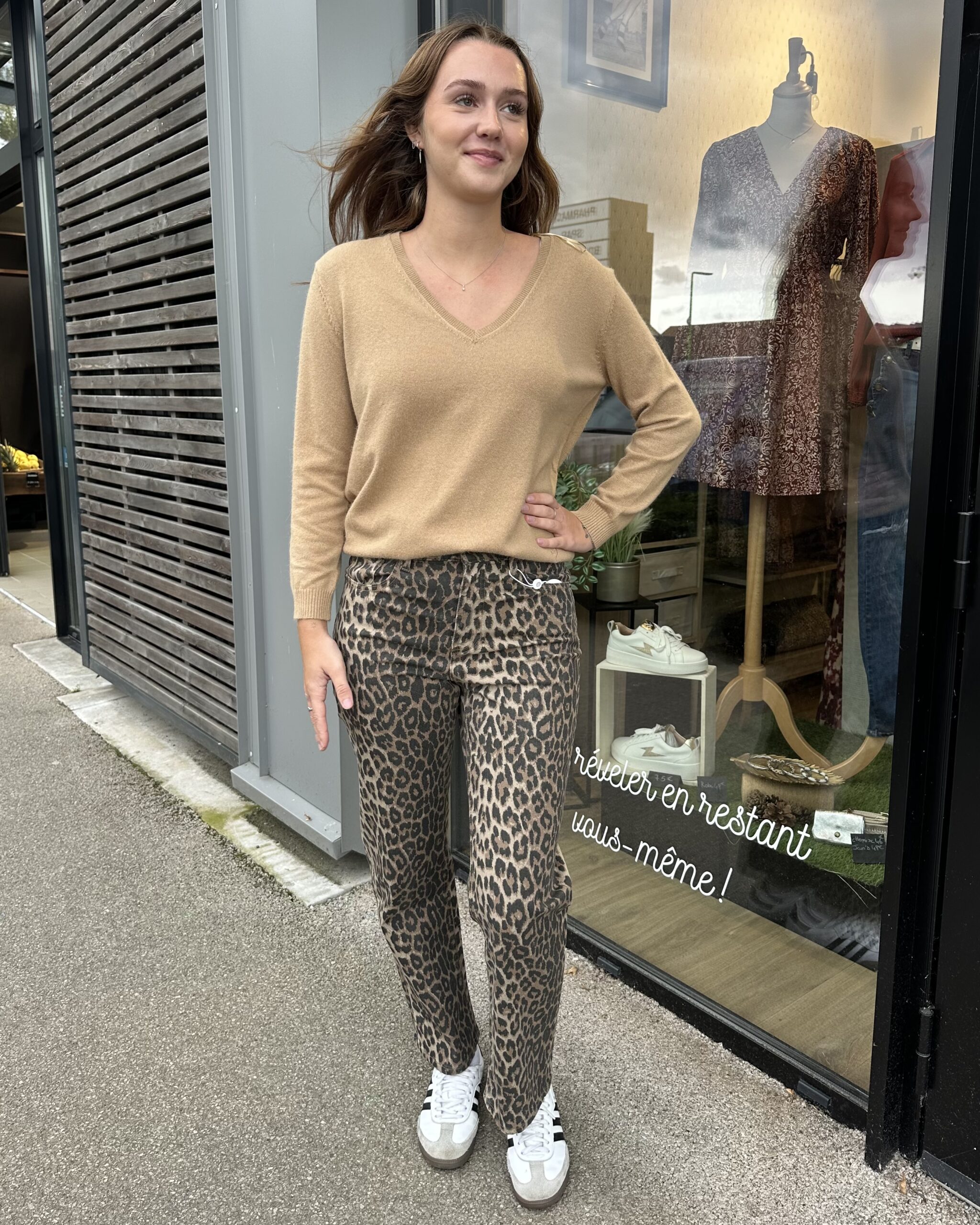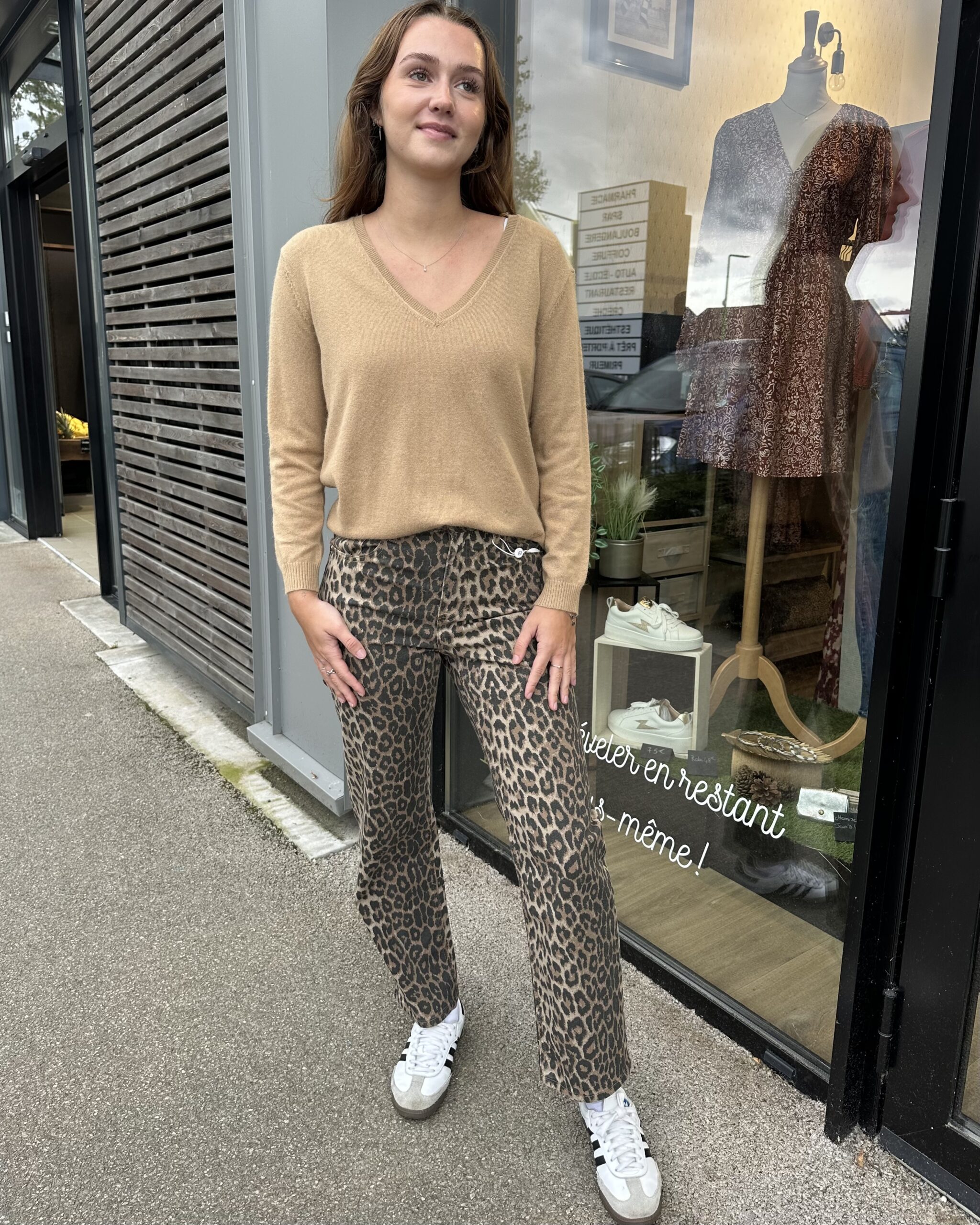 Jean droit léopard.