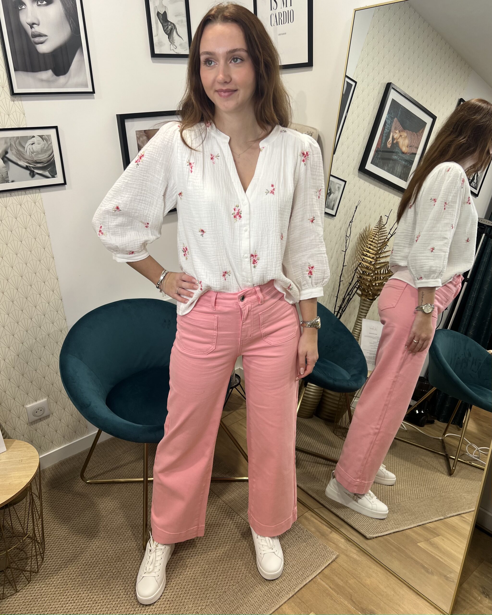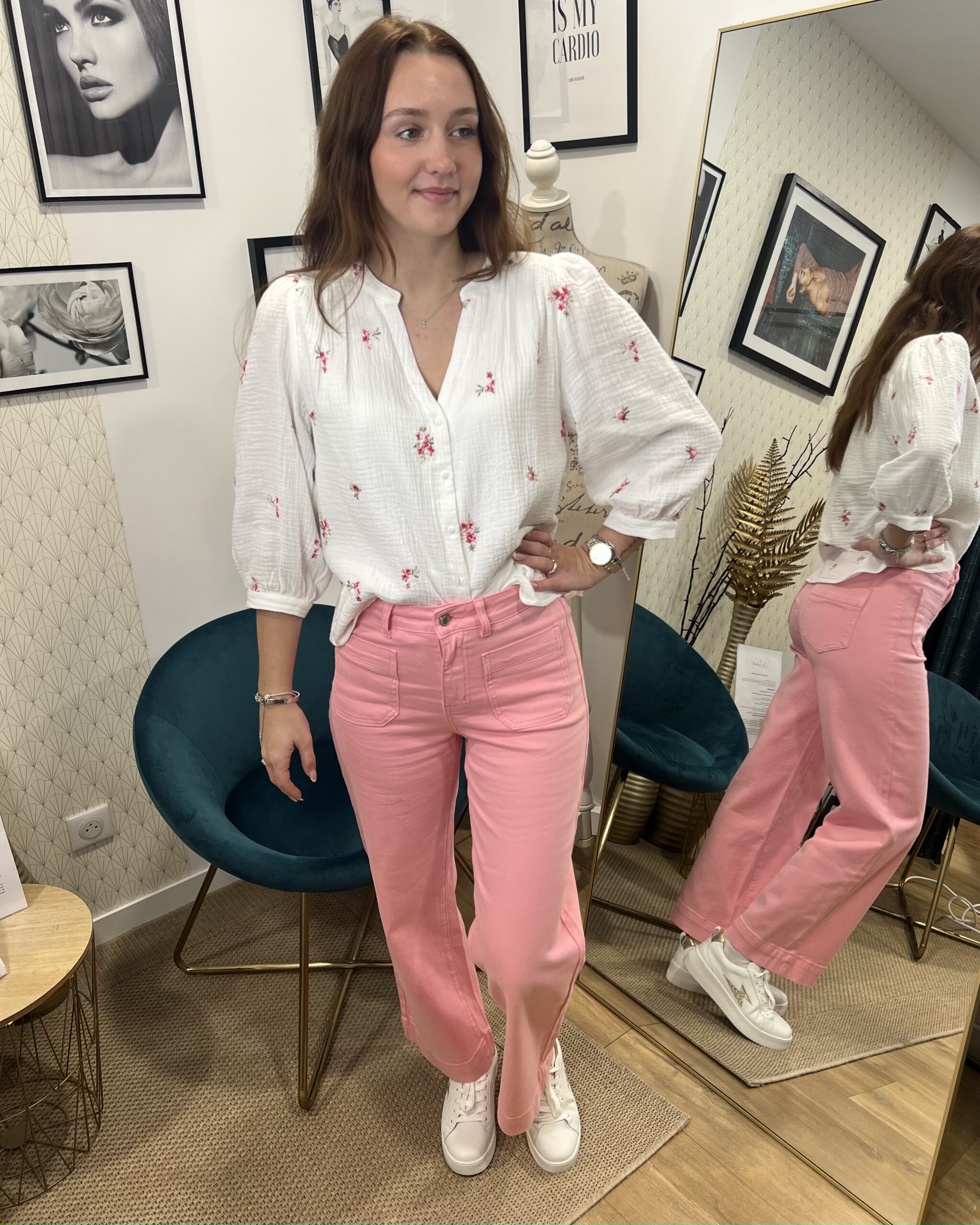 Polyvalent et élégant, ce jean rose s’associe parfaitement avec un top blanc, un pull léger ou une veste pour créer des tenues modernes et féminines.