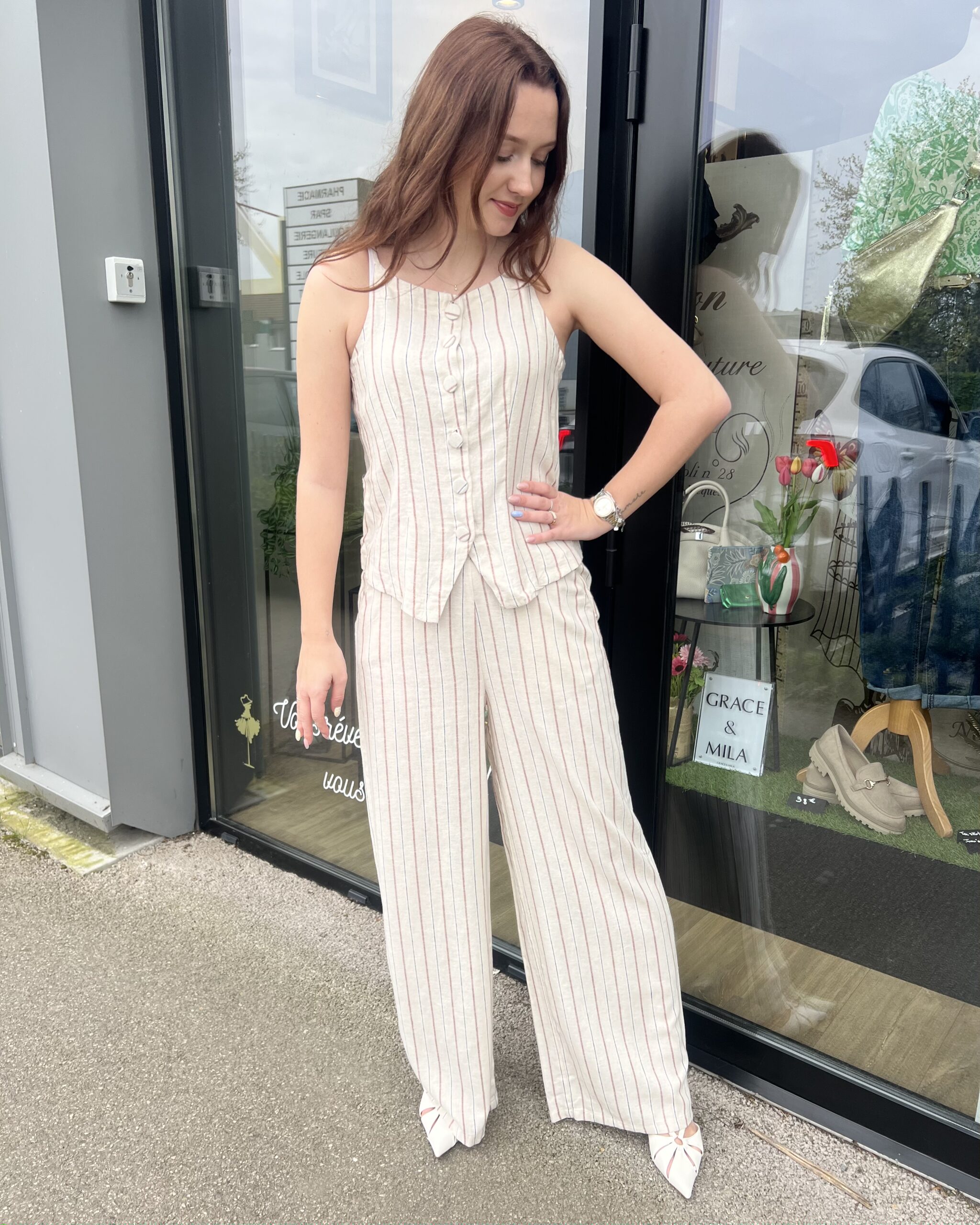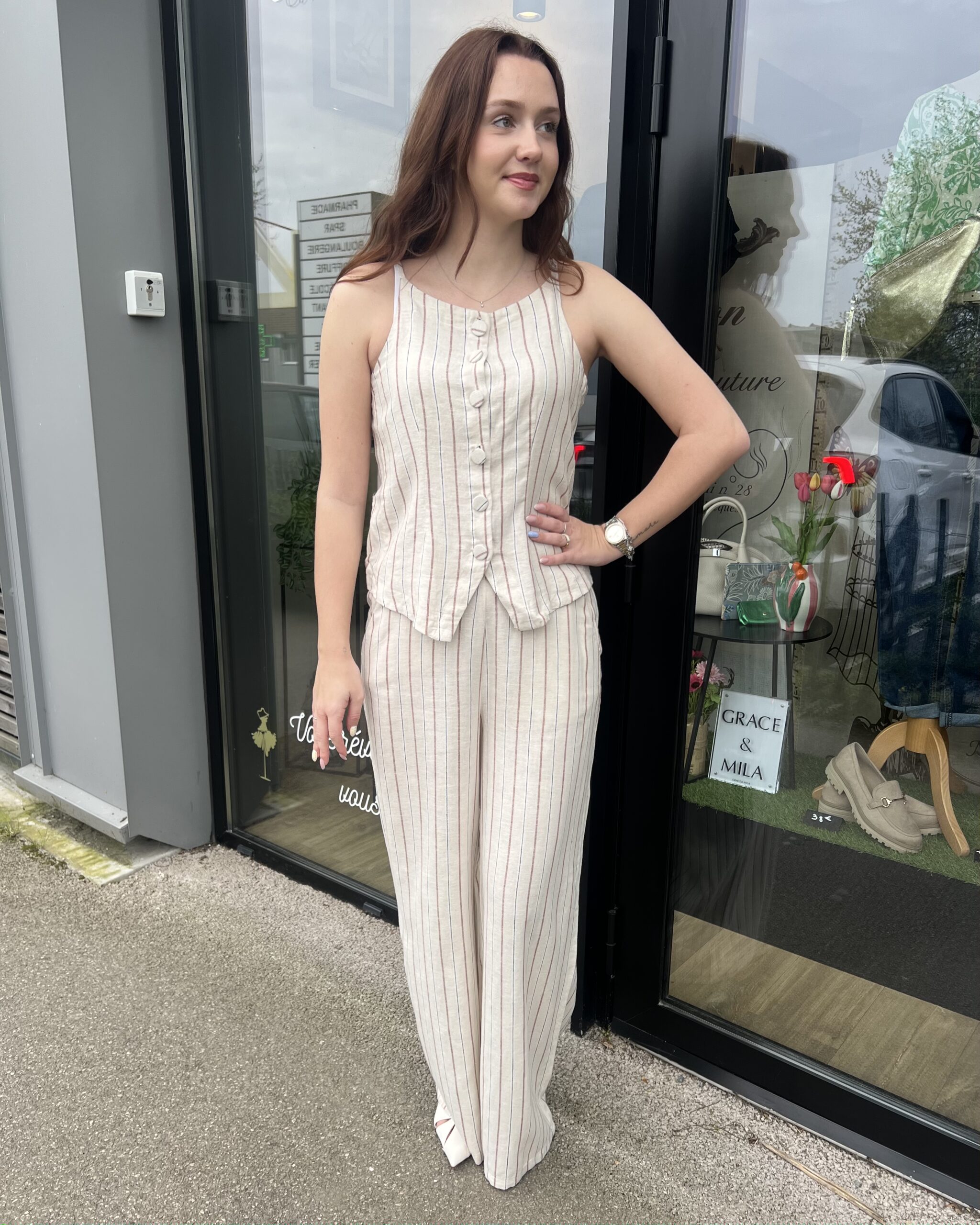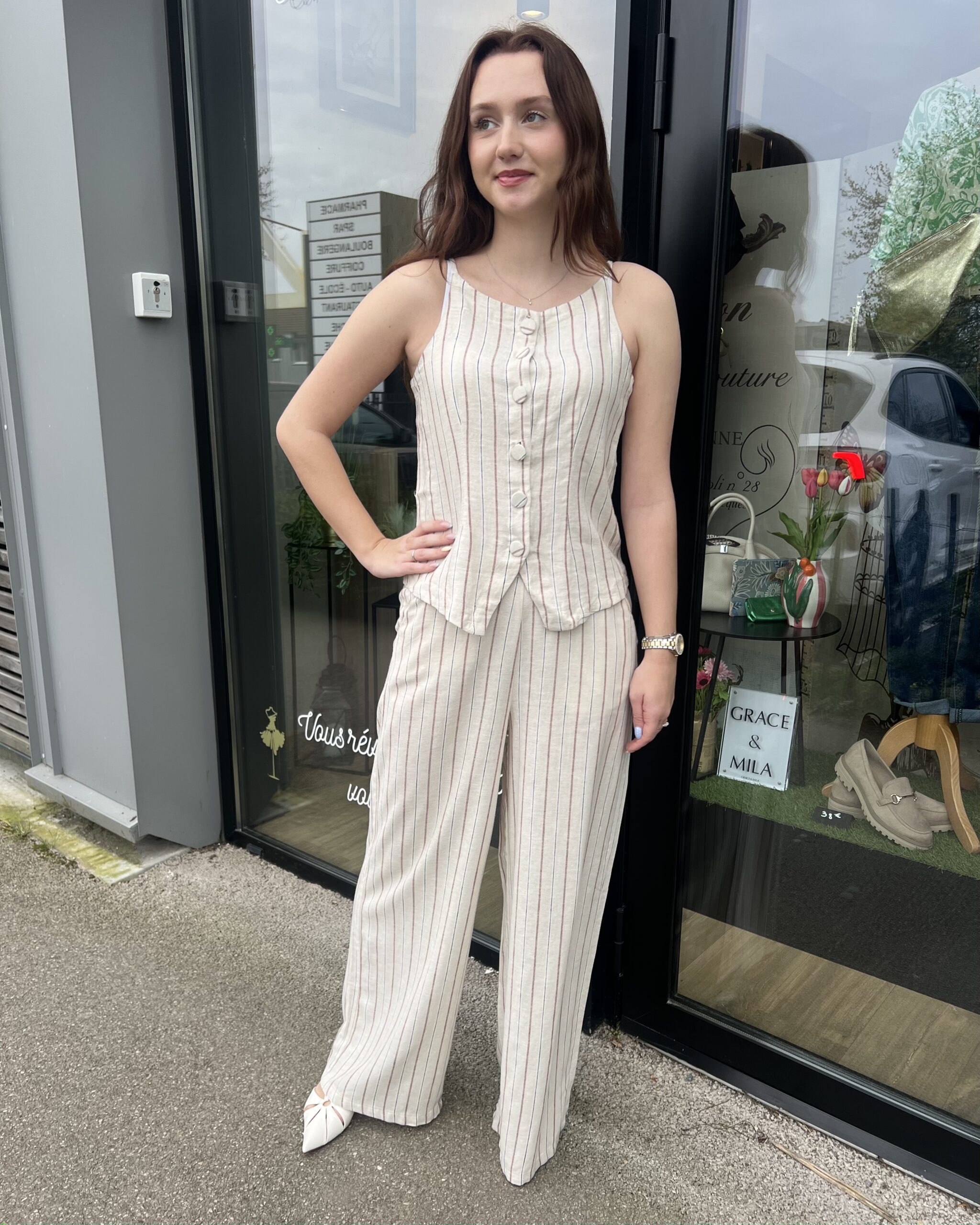 Alliez confort et allure avec ce pantalon marron à fines rayures, une pièce pensée pour sublimer votre quotidien. Son motif discret apporte une touche d’élégance tout en restant facile à porter.