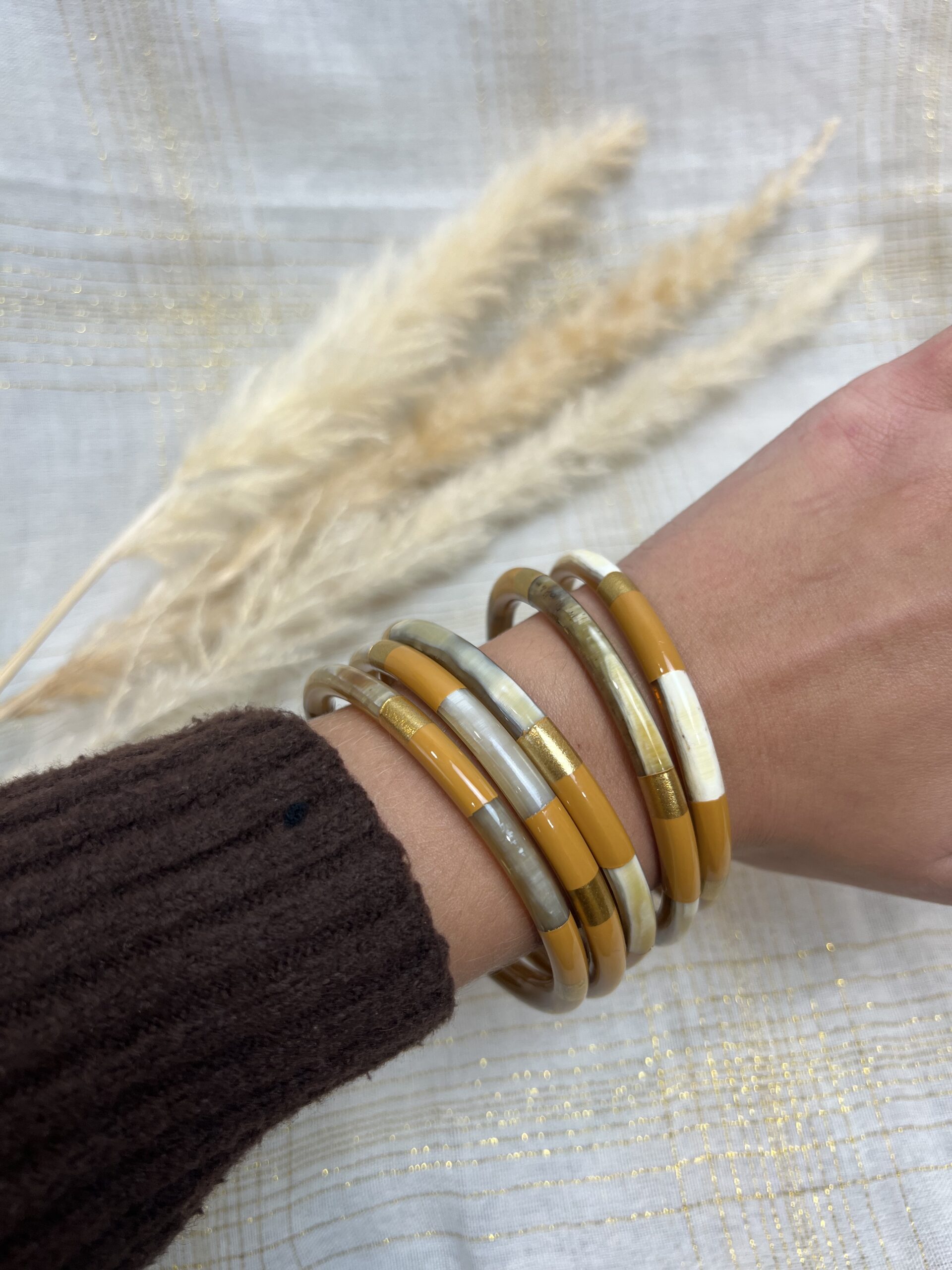 Les JONCS CORNE SUBLIME MOUTARDE ajoutent une note ensoleillée à vos looks. Leur couleur moutarde et leur finition dorée créent un bijou à la fois chic et moderne.
