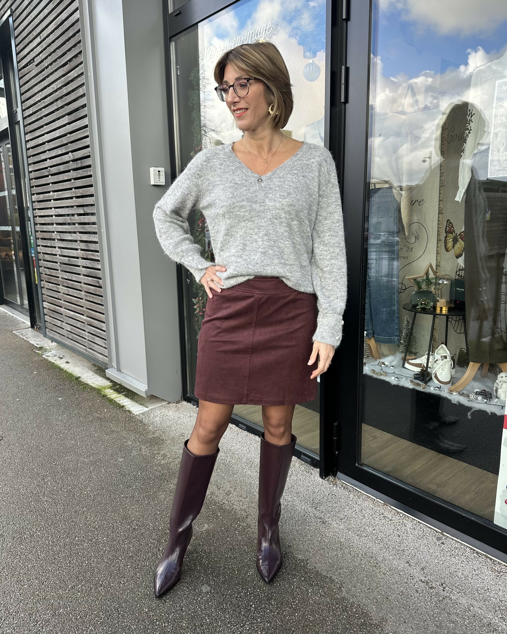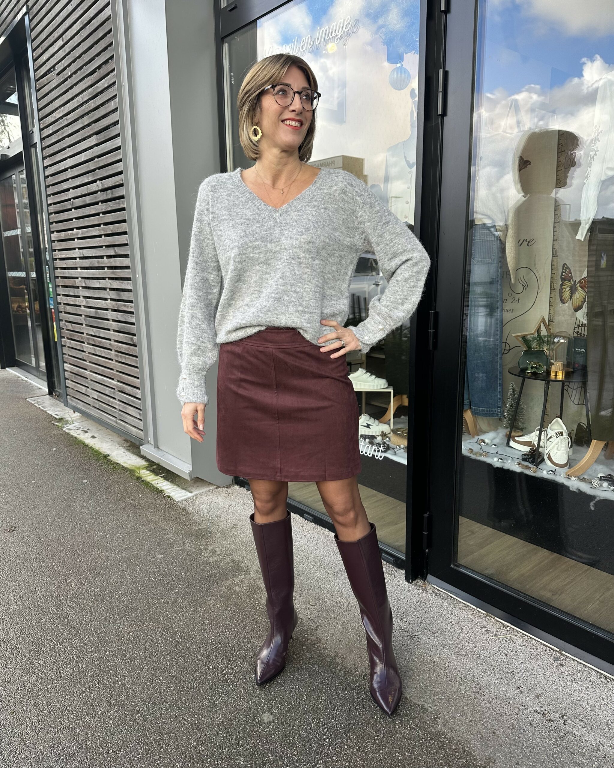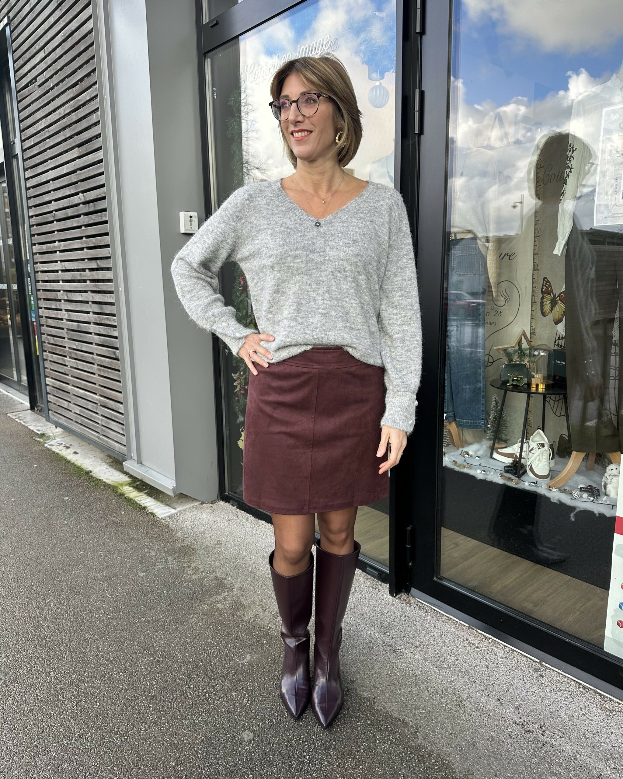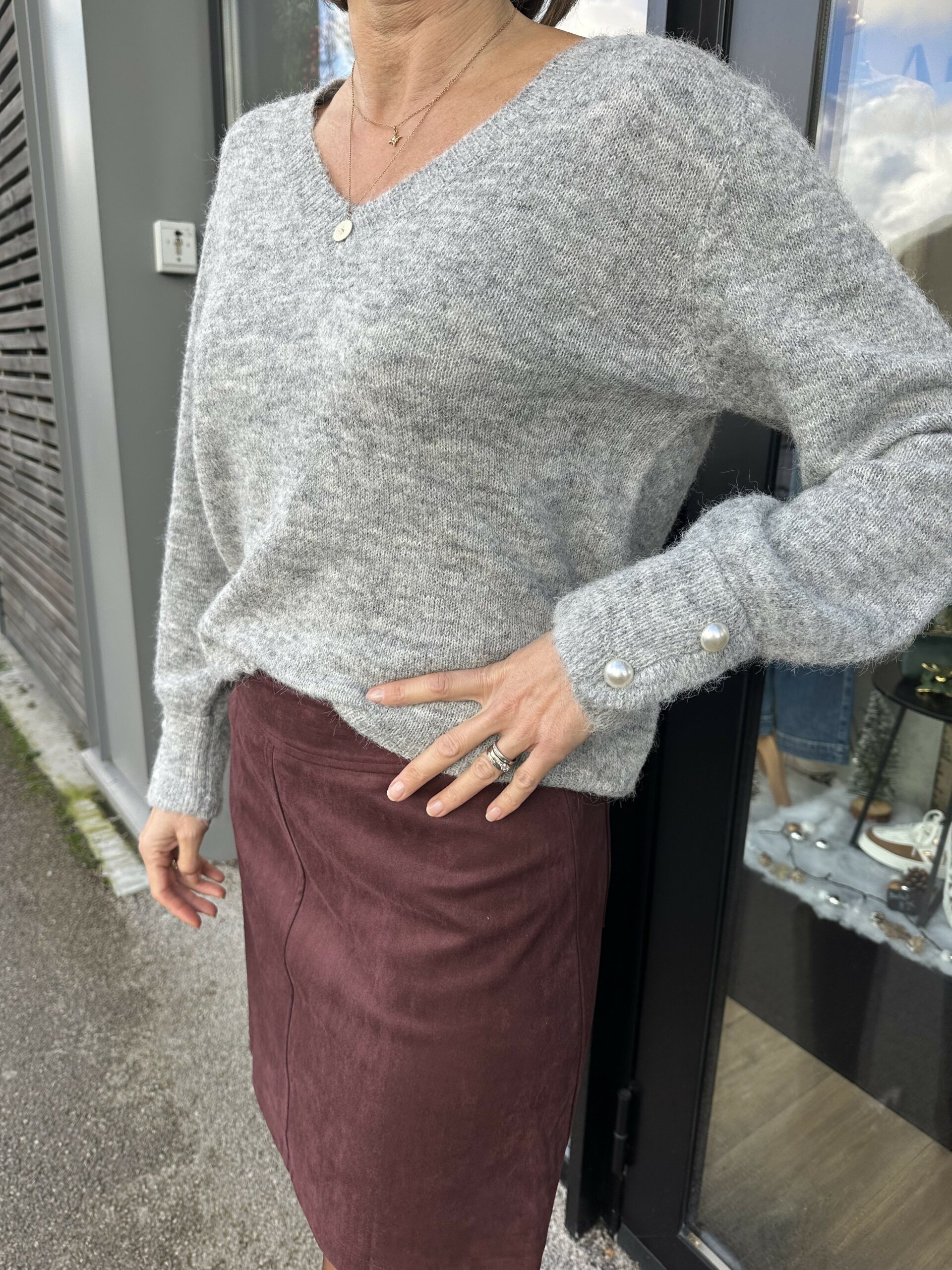 Le PULL GRIS COL V avec des boutons perles sur les manches, est parfait pour celles qui recherchent simplicité et style.