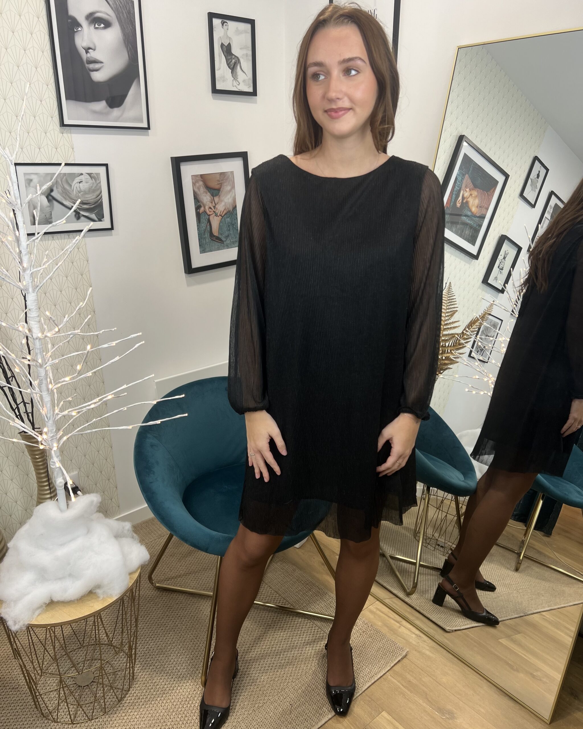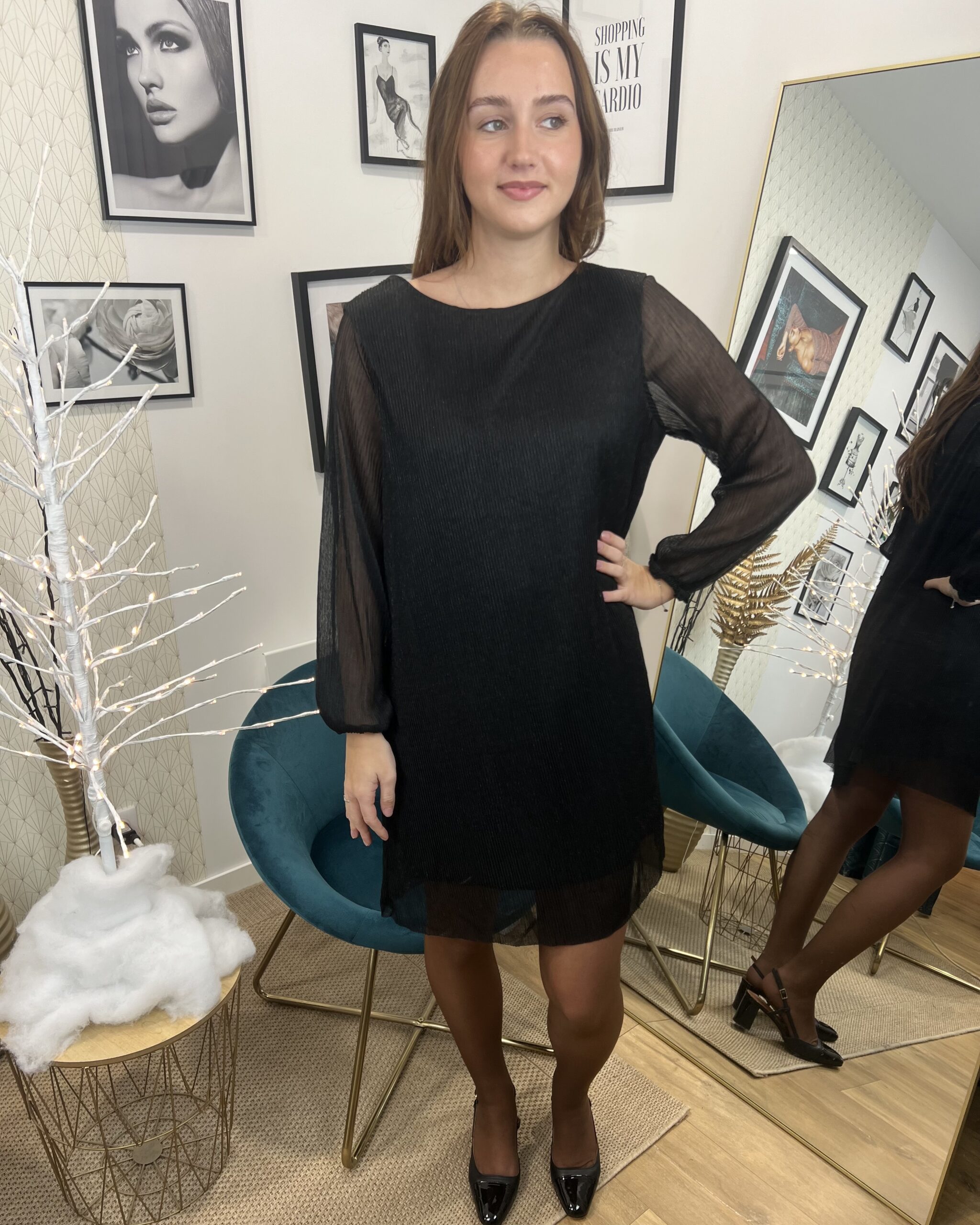 Élégante, parfaite pour les fêtes de fin d’année, cette robe droite pailletée noire et argentée est un indispensable pour briller en soirée. Sa coupe droite flatte toutes les silhouettes tout en offrant un confort optimal.