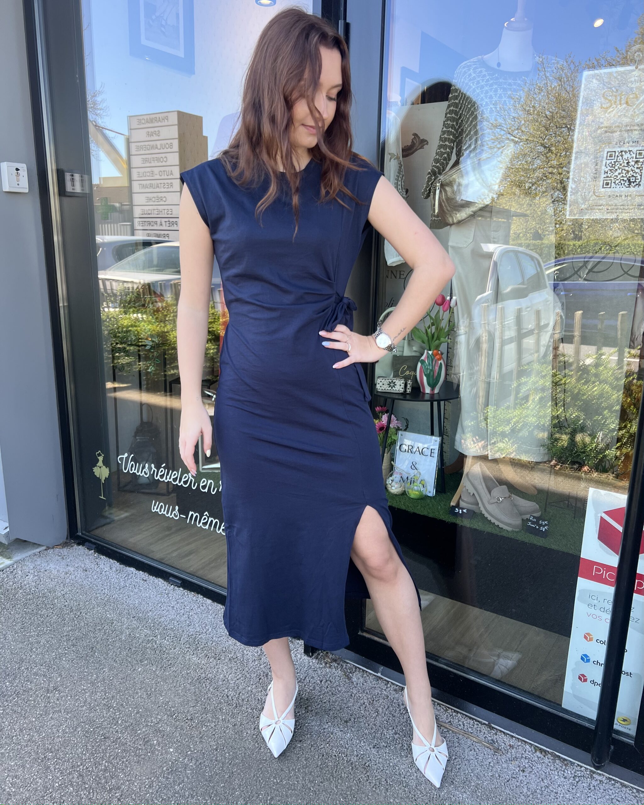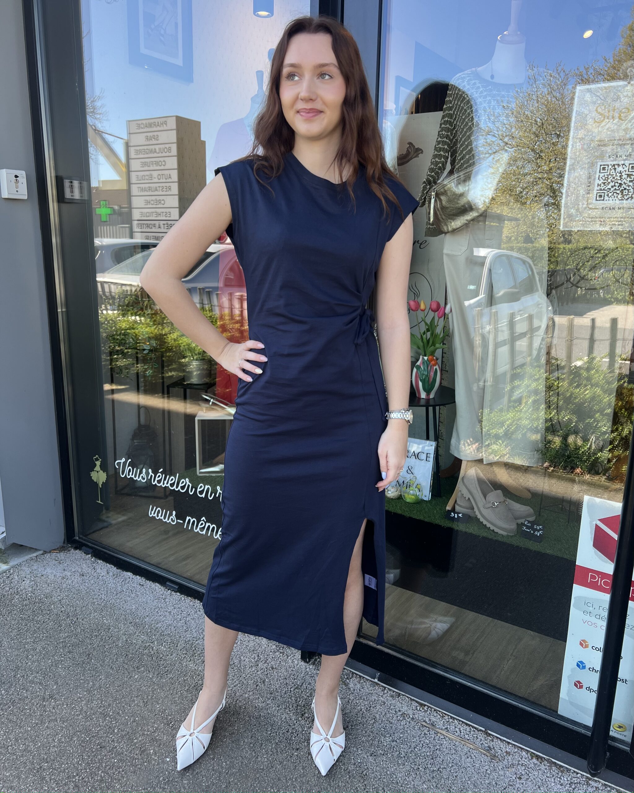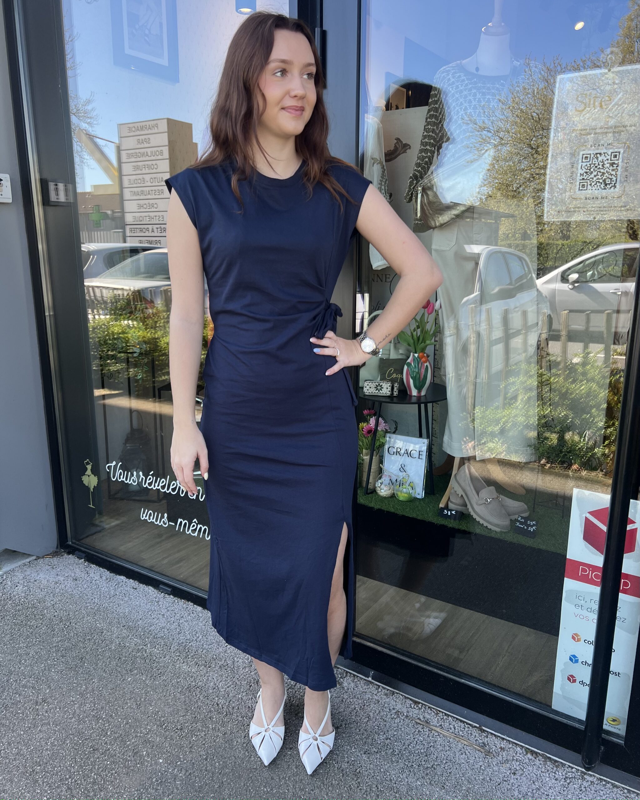 La robe qu’on enfile sans réfléchir et qu’on adore porter toute la journée. Cette robe t-shirt bleu marine mise sur la simplicité pour offrir un maximum de confort, tout en gardant un style actuel.