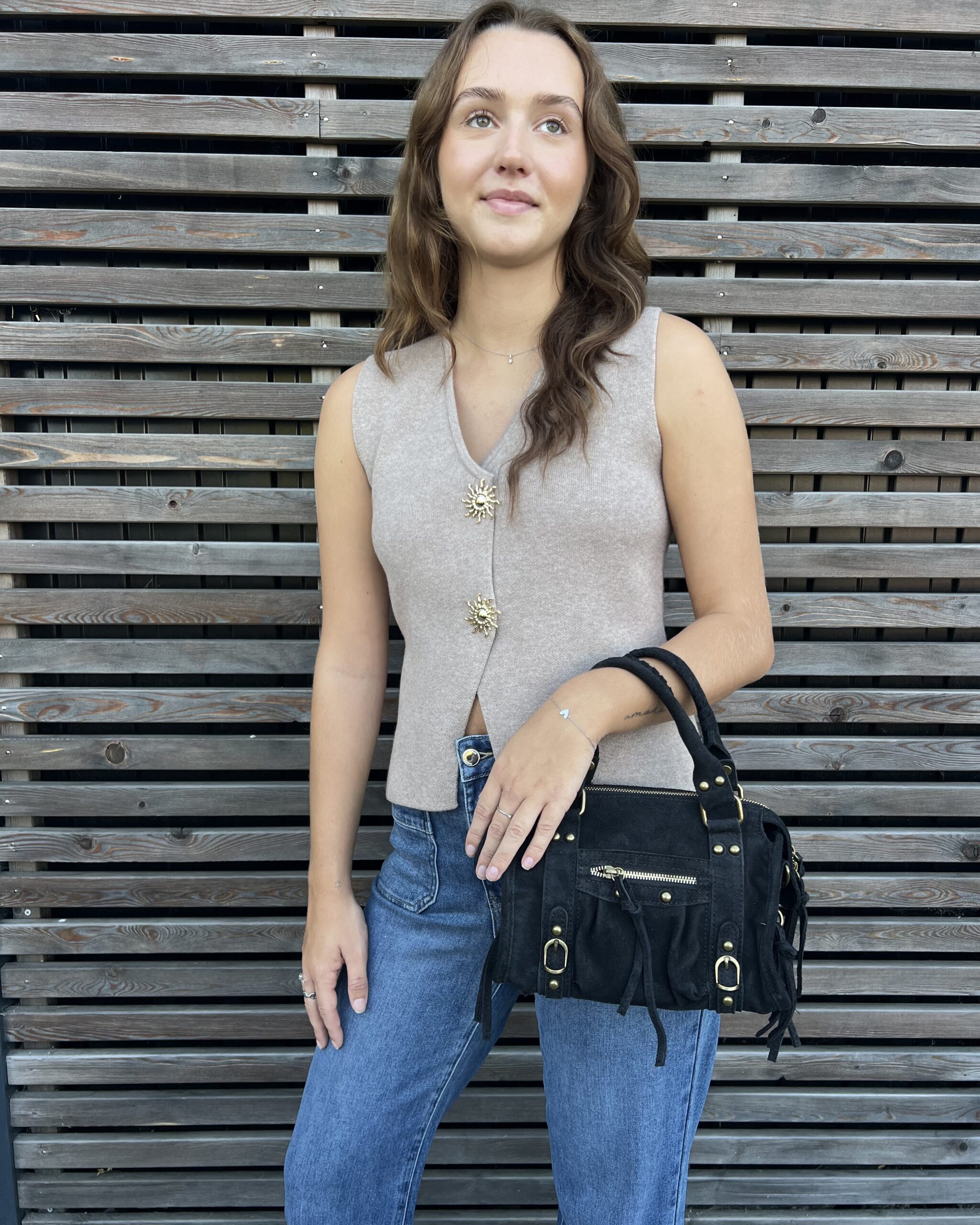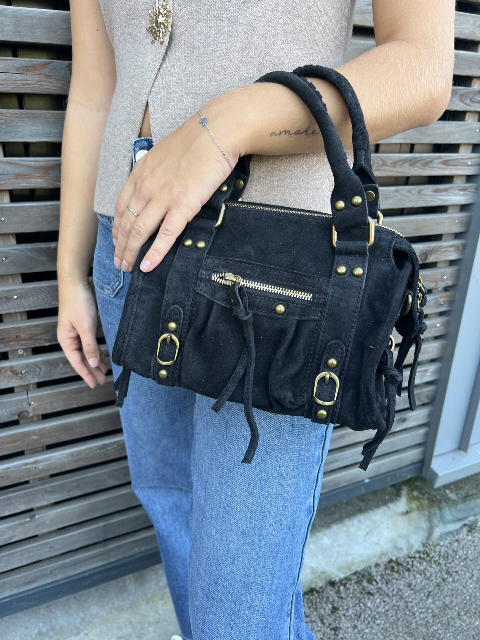 Sac à main en suède noir.