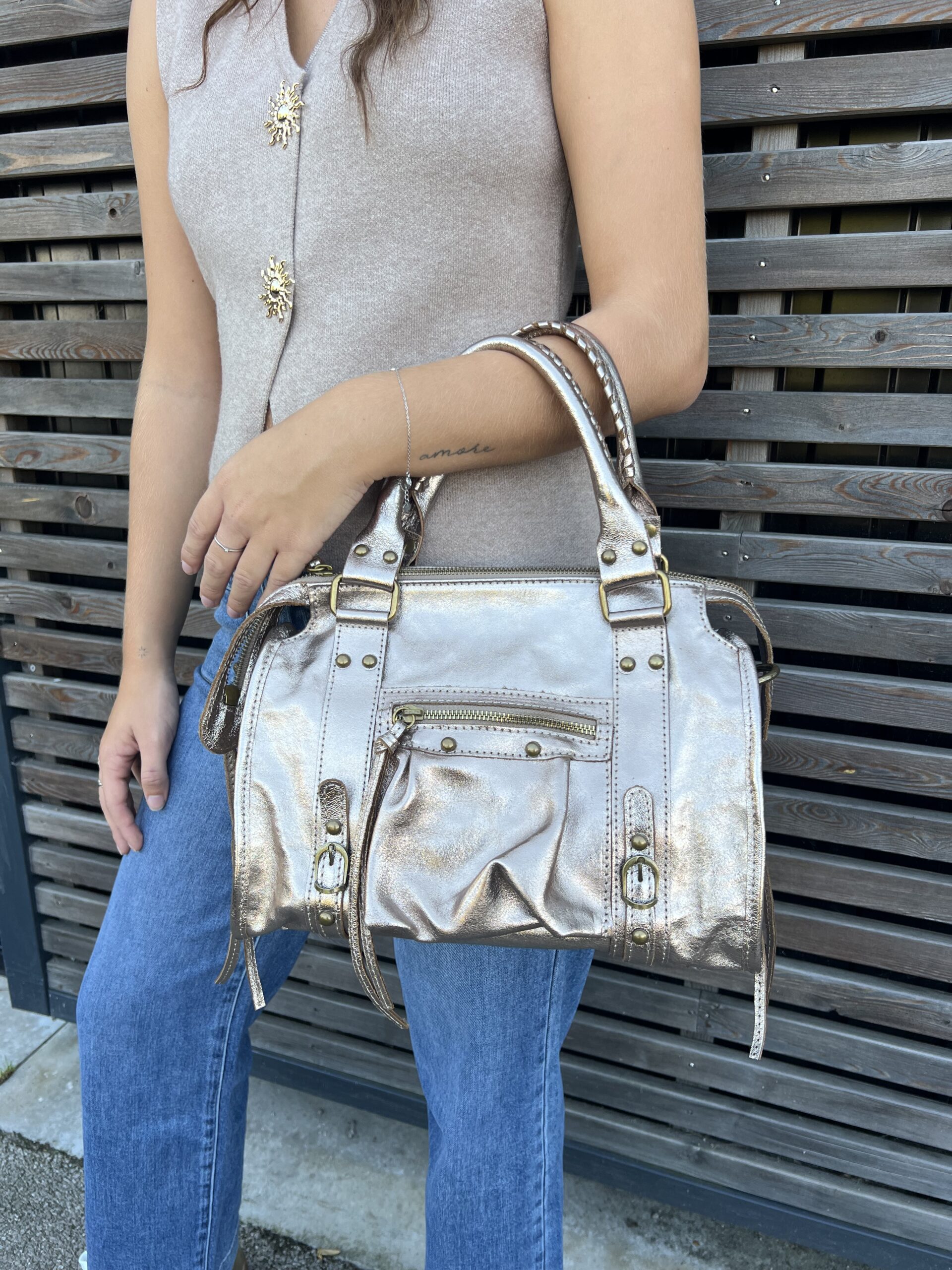 Sac à main grand format cuivré.