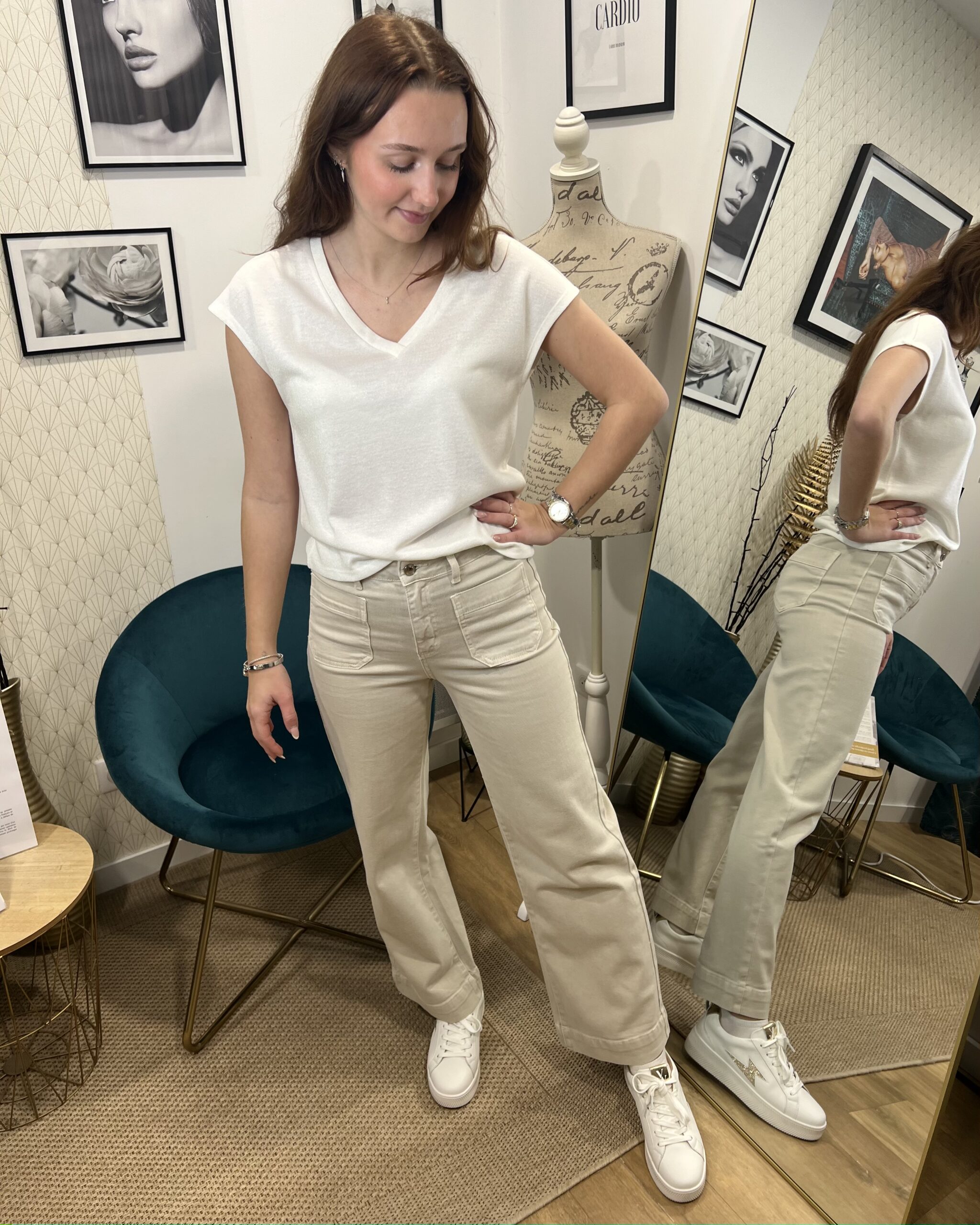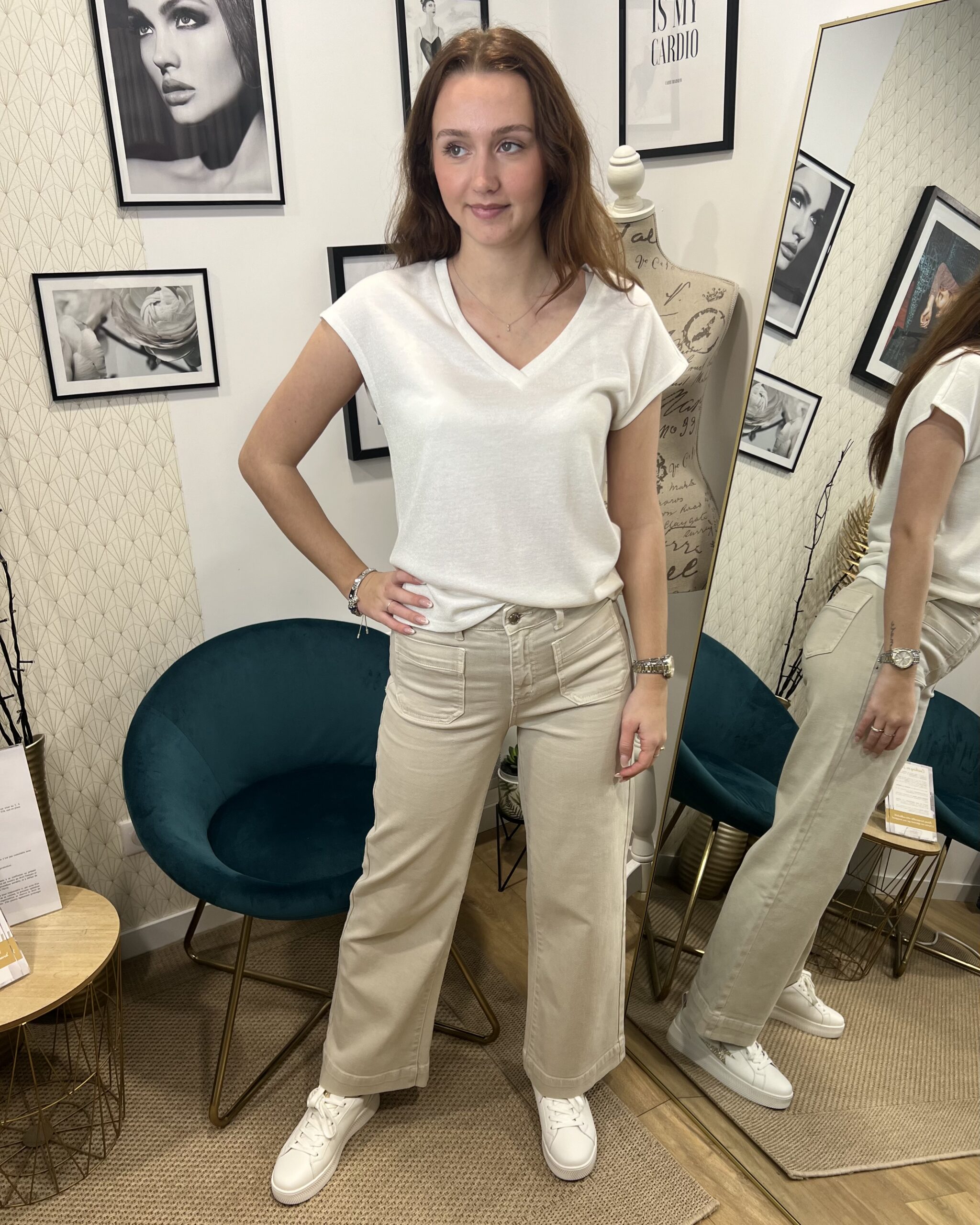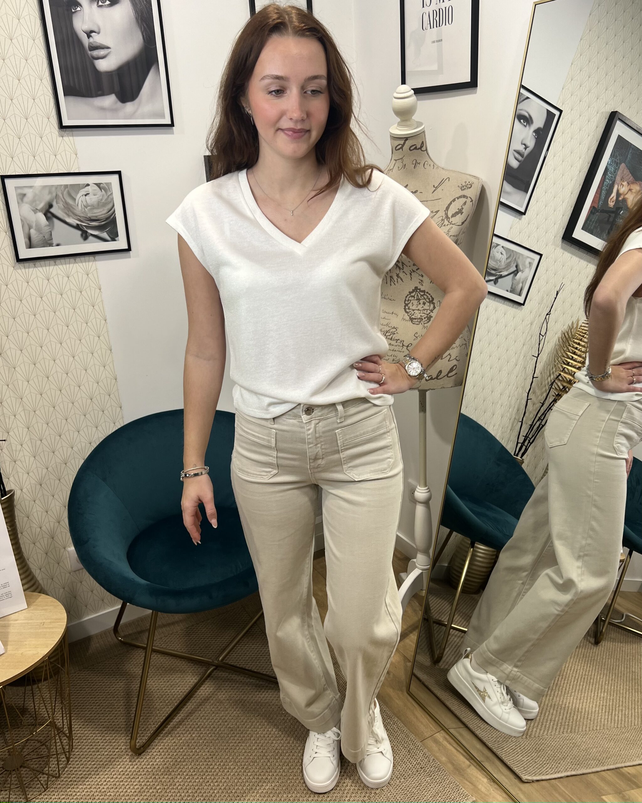 Le tee-shirt blanc lurex est un basique chic qui apporte une touche lumineuse et subtile à votre tenue. Confectionné en viscose et lurex, il combine confort, douceur et léger effet scintillant. Ce tee-shirt se porte facilement au quotidien ou en look plus habillé.