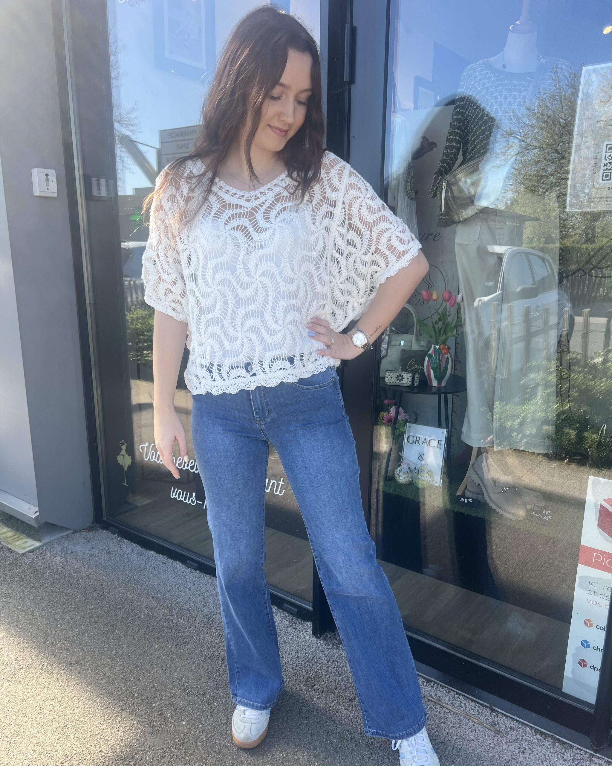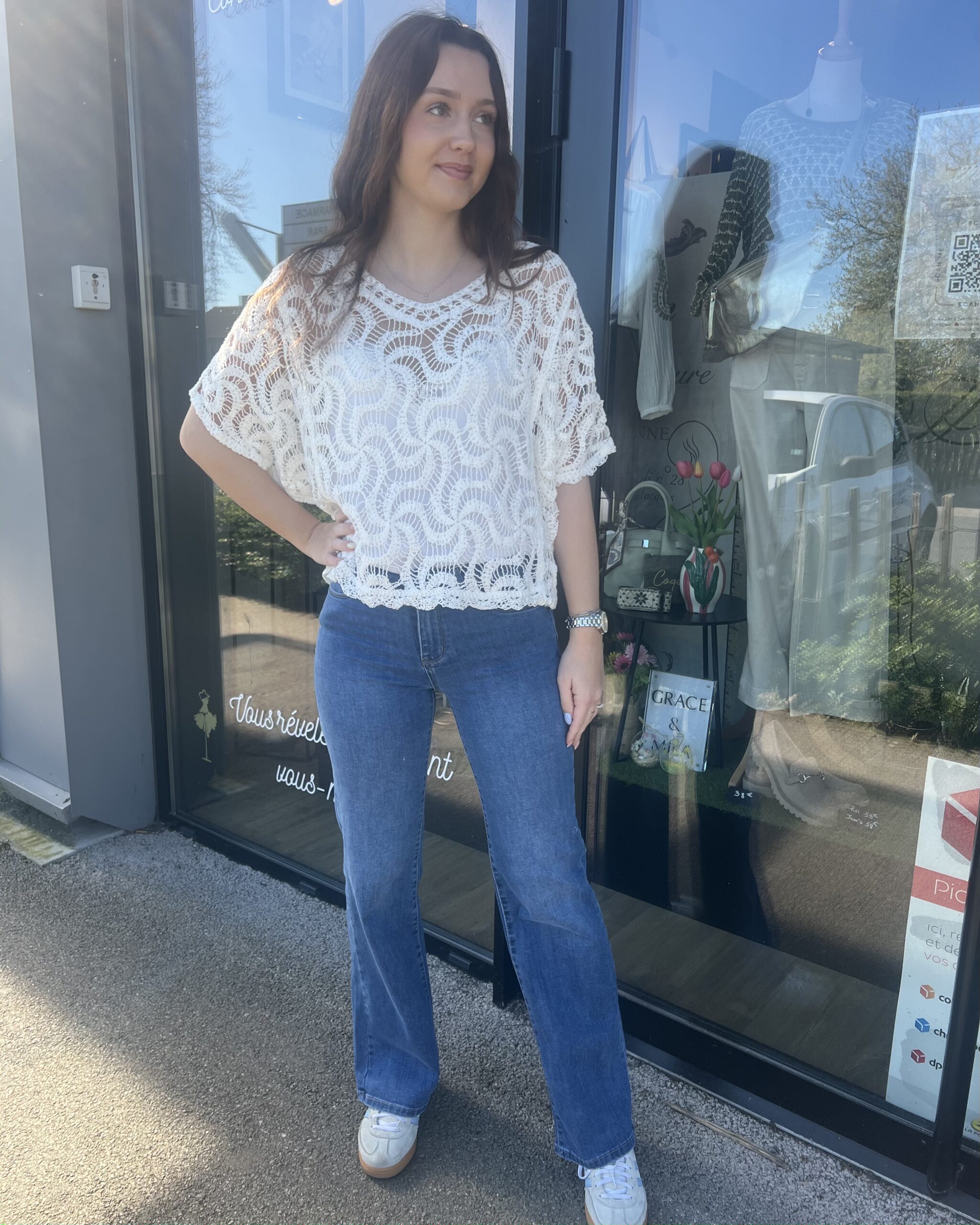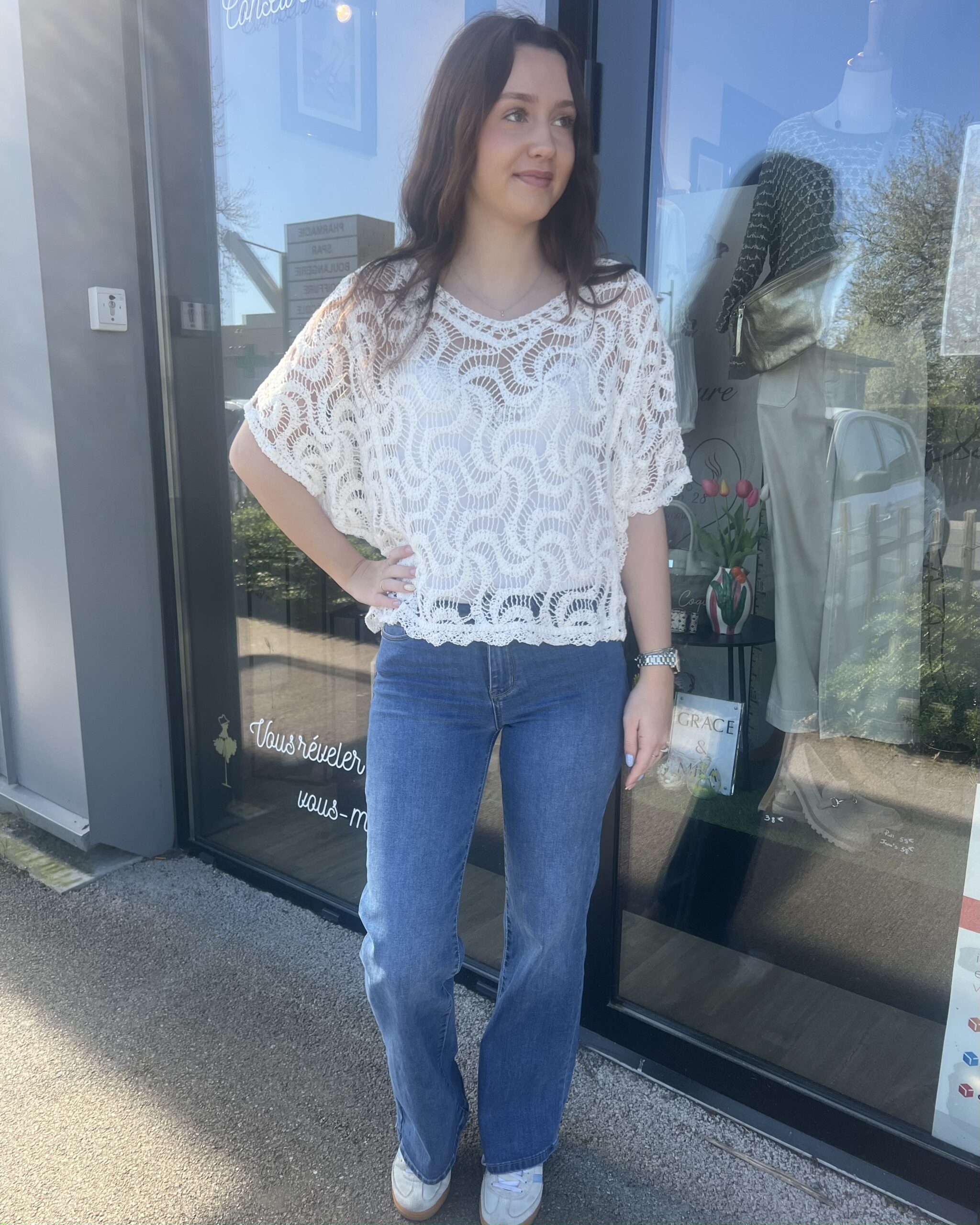 Léger, délicat et plein de charme, ce top en crochet blanc évoque instantanément les beaux jours. Sa texture ajourée laisse subtilement apparaître la peau pour un rendu à la fois féminin et naturel.