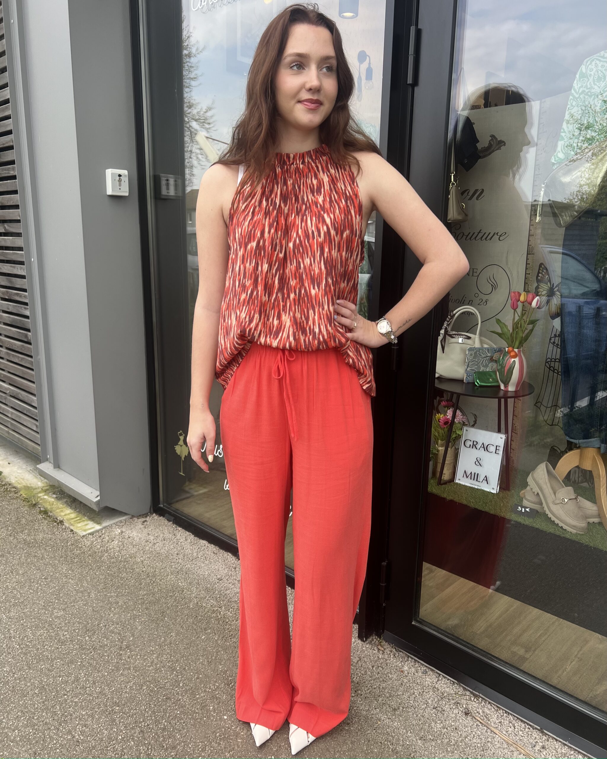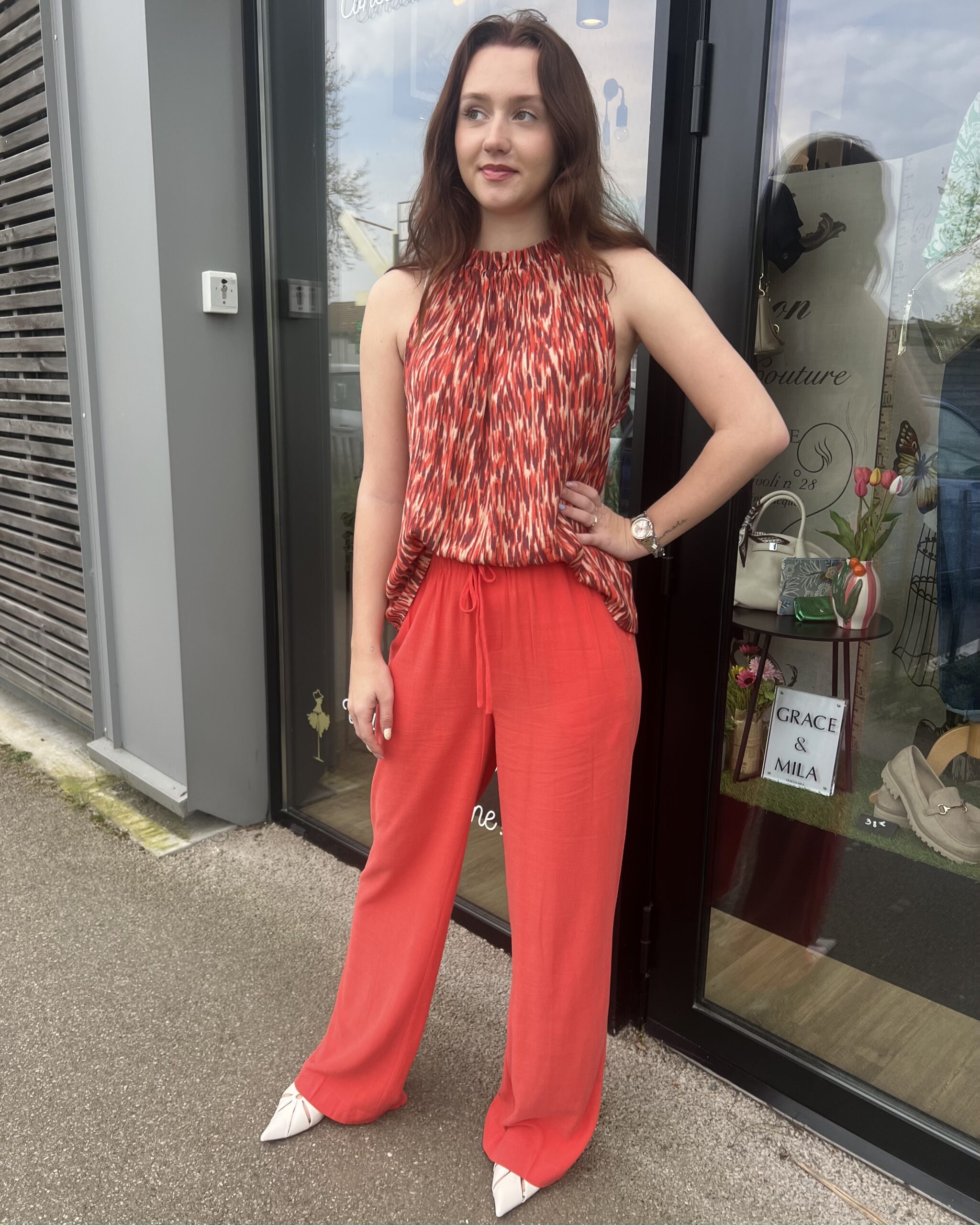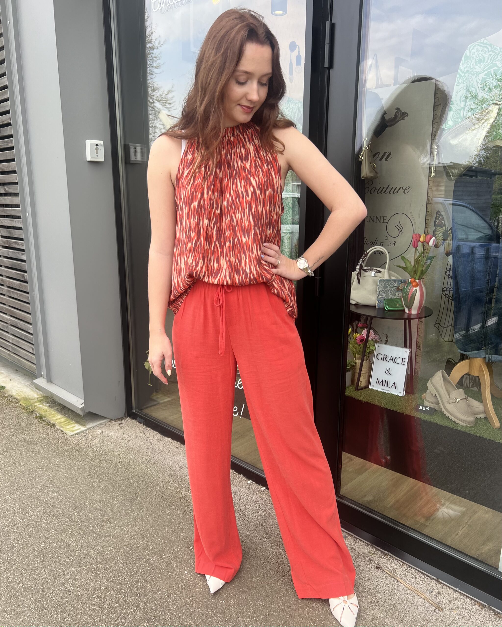 Sa couleur rouge intense attire le regard tout en restant sophistiquée, idéale pour rehausser un look en toute simplicité. Porté avec un pantalon ou une jupe, il transforme une tenue classique en ensemble travaillé et moderne.