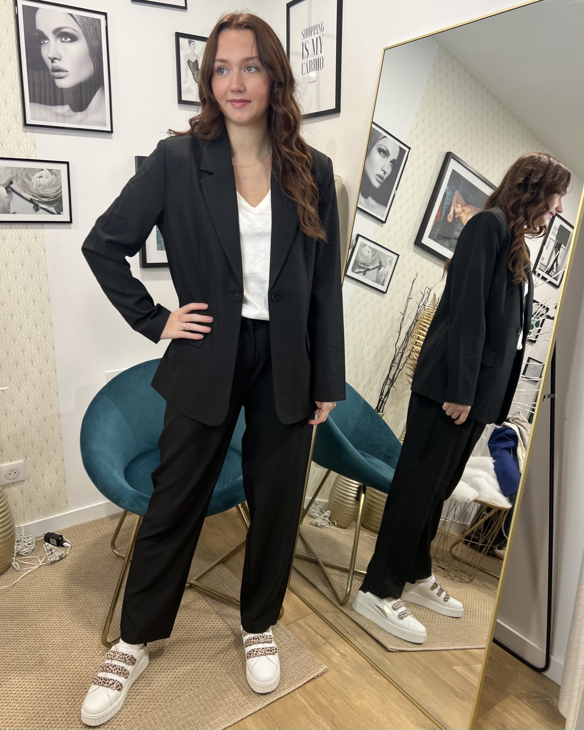 Le coloris noir, sobre et sophistiqué, permet de créer une multitude de looks, du plus professionnel au plus décontracté chic. Cette veste blazer se porte aussi bien fermée pour une tenue élégante que ouverte pour un style plus moderne et fluide.