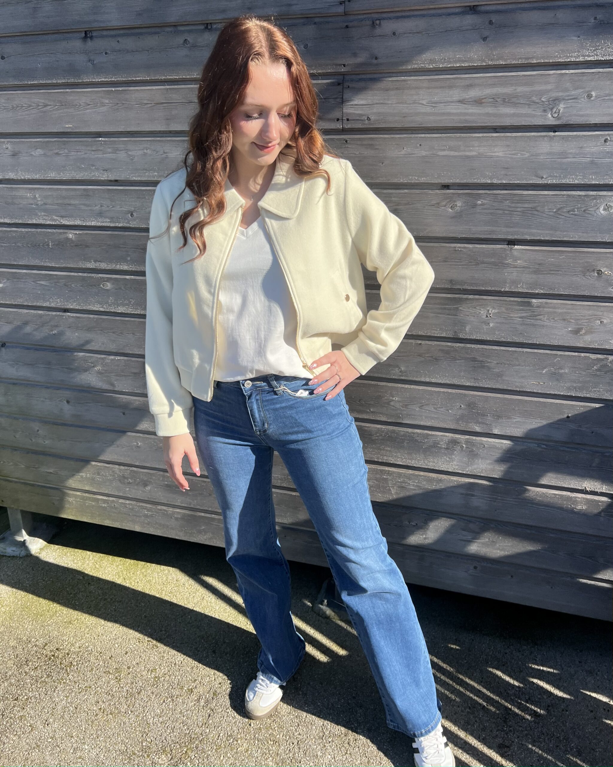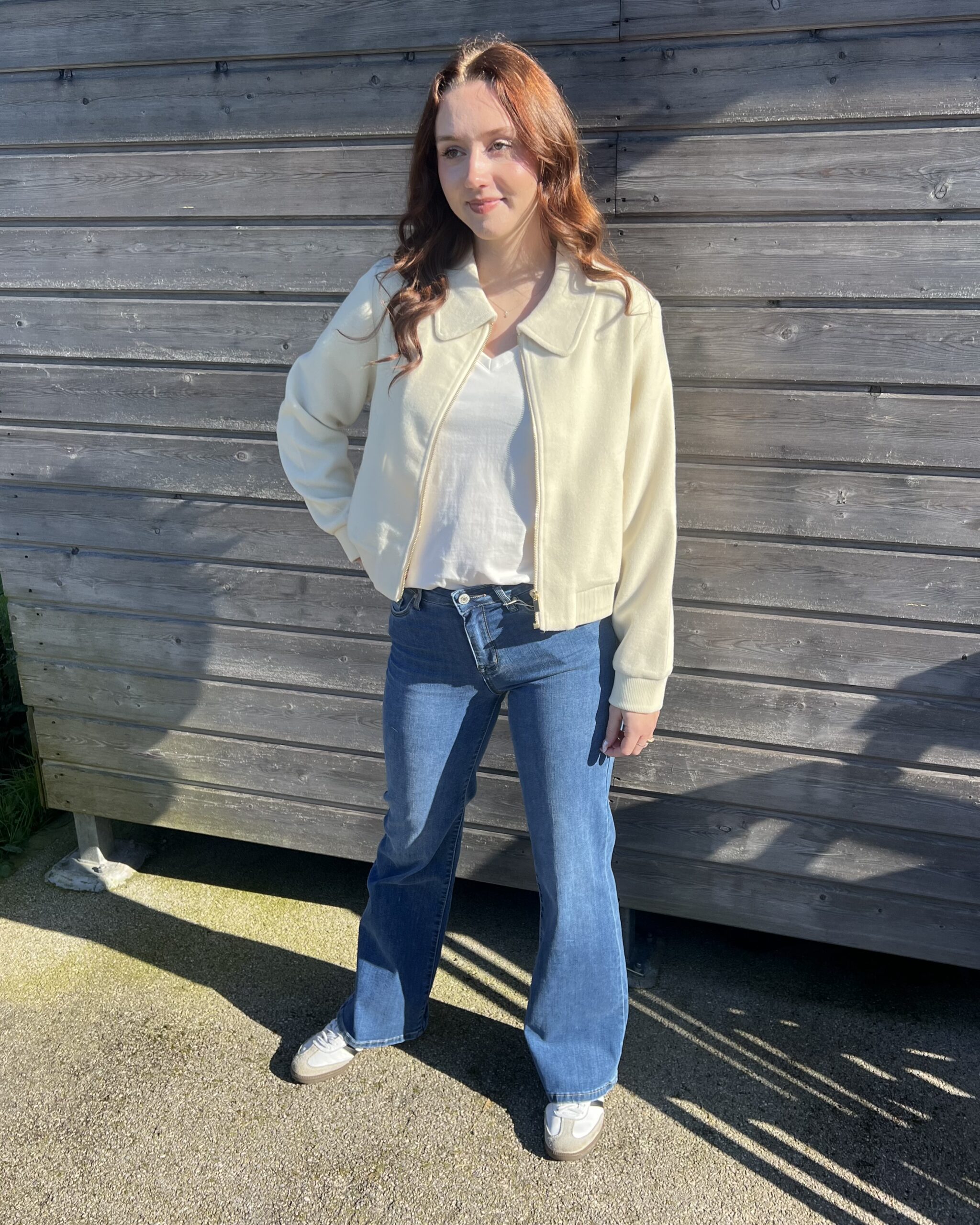 Apportez une touche moderne à votre tenue avec cette veste bomber écru. Son style à la fois tendance et intemporel en fait une pièce parfaite pour compléter un look du quotidien.