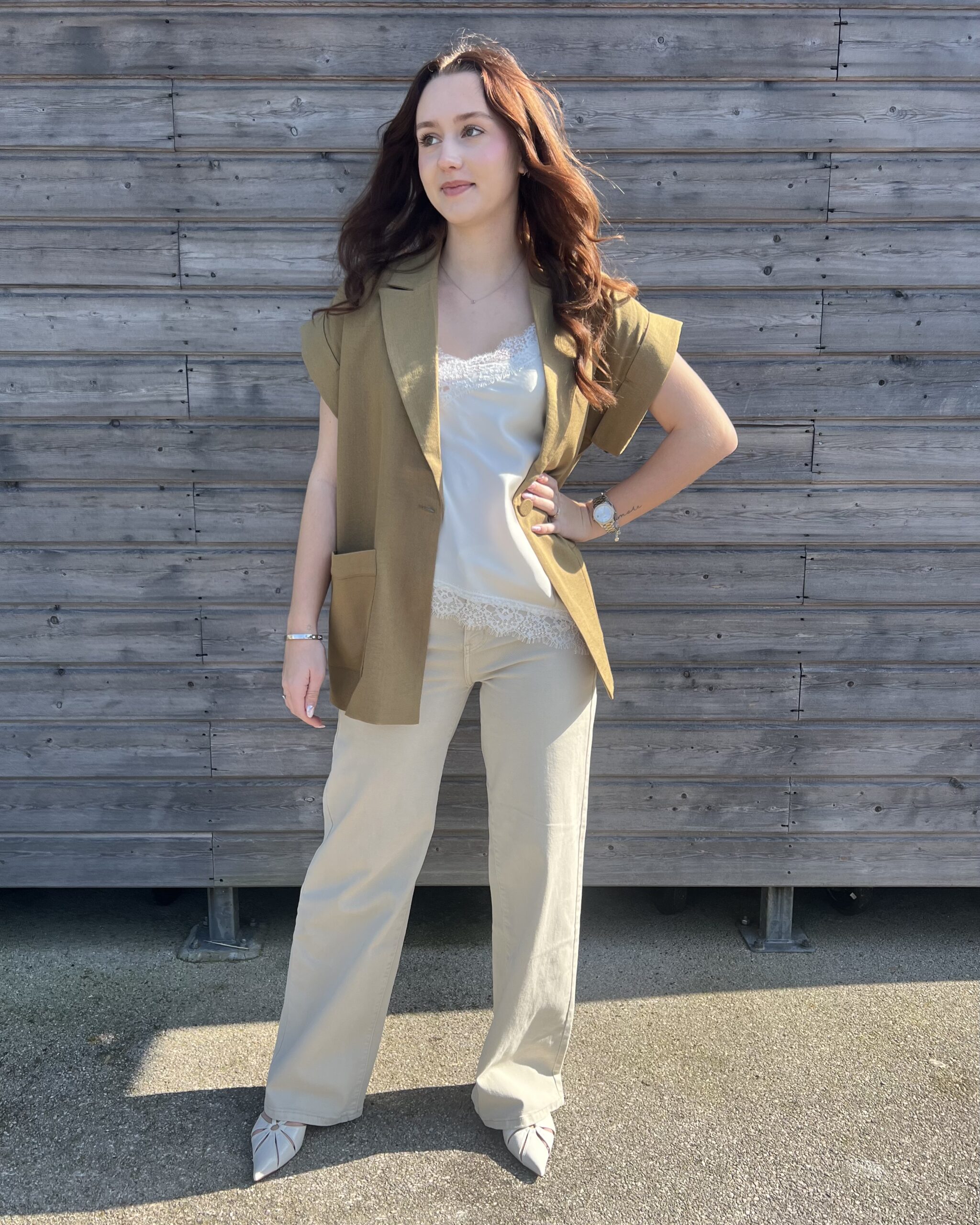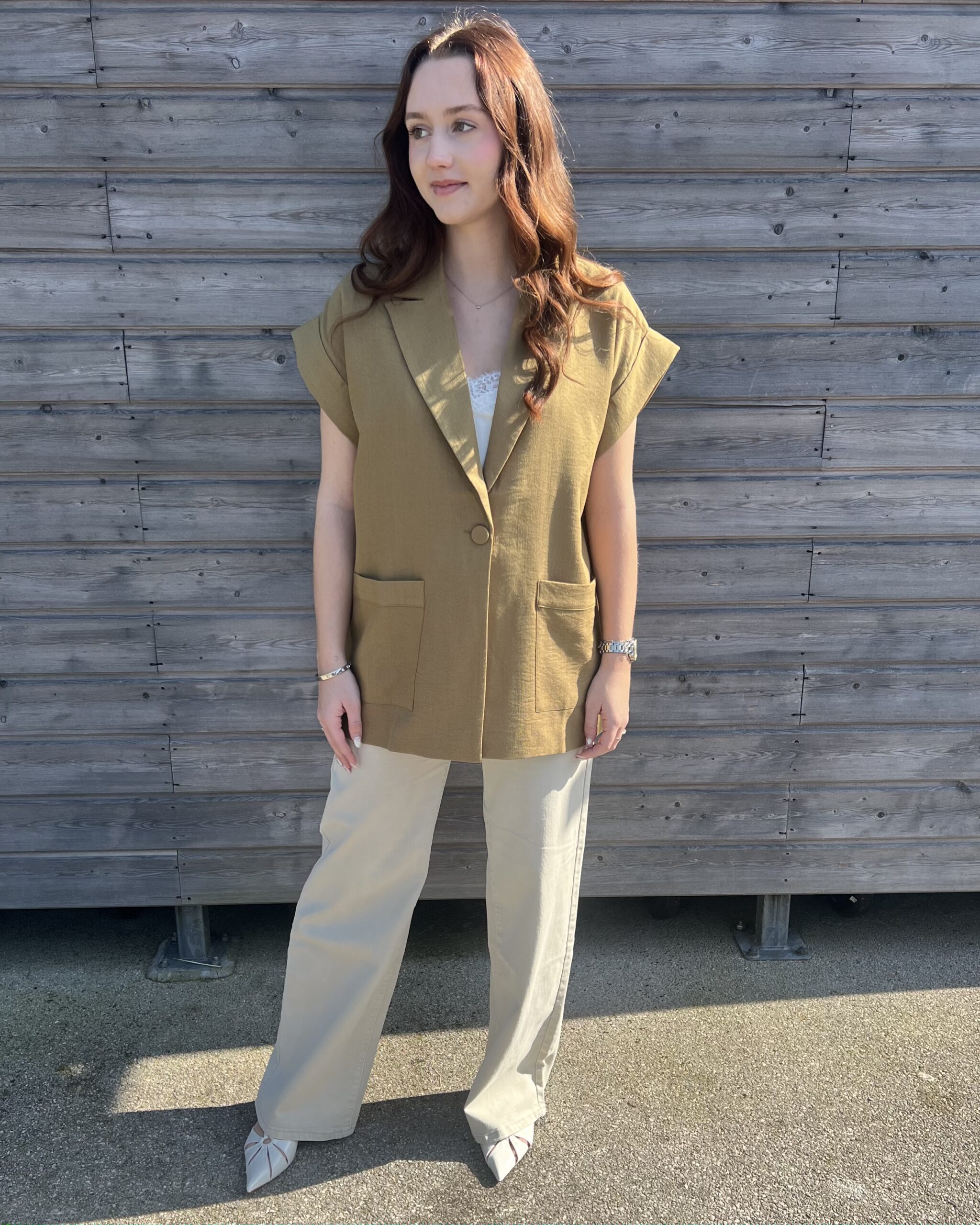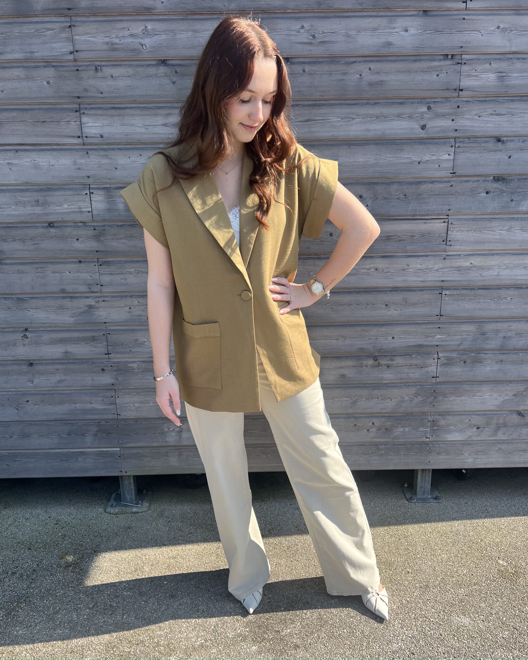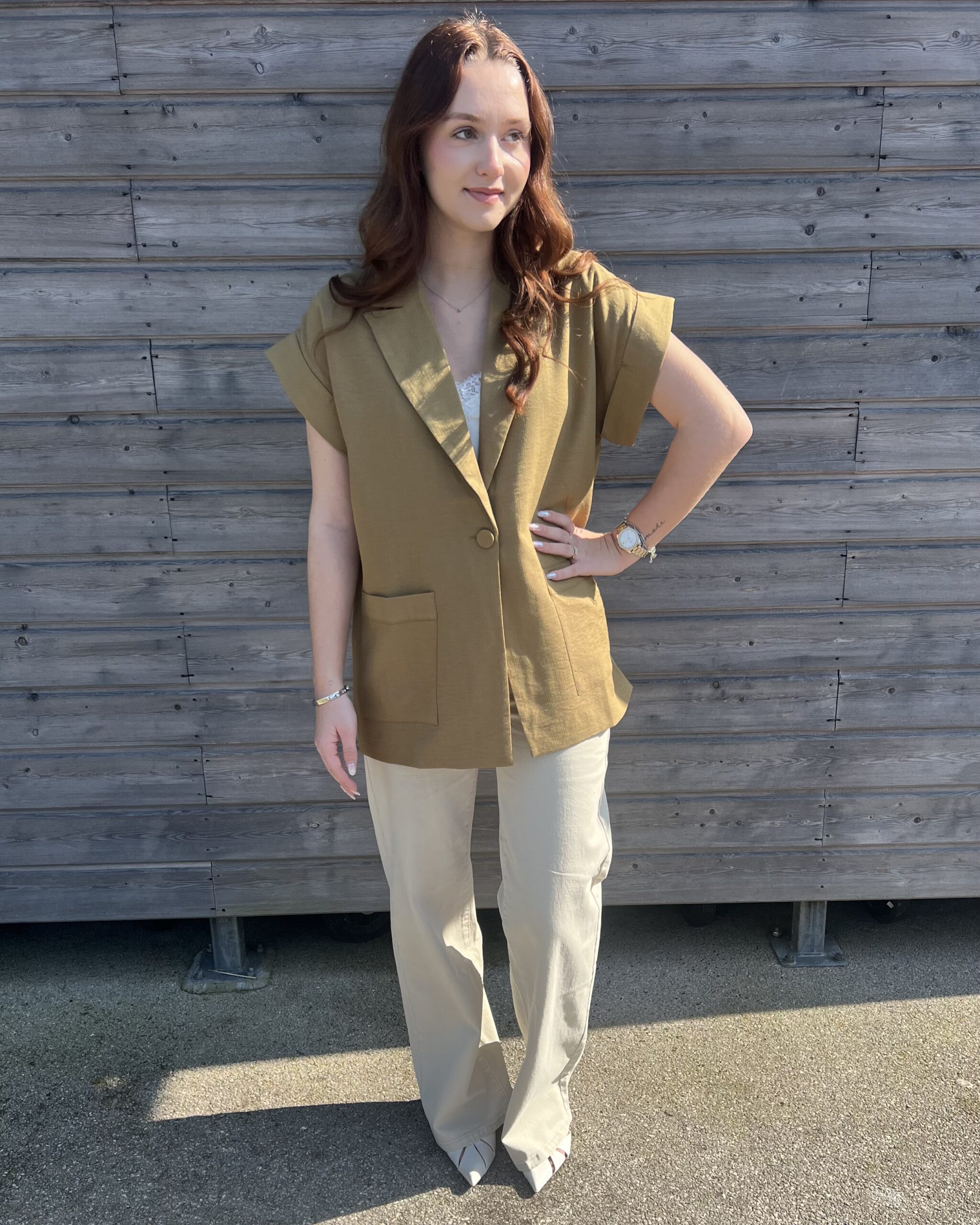 Affirmez votre style avec cette veste vert olive, une pièce incontournable qui allie élégance et modernité. Sa teinte naturelle, à la fois douce et sophistiquée, s’intègre parfaitement dans un dressing féminin et s’adapte à toutes les saisons.